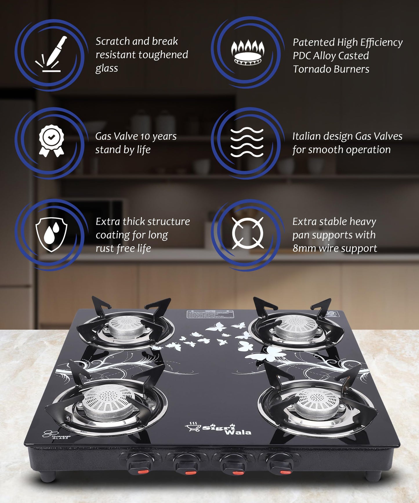 PREMIUM QUALITY: Experience unparalleled durability with the SIGRIWALA Gas Stove, expertly crafted from high-grade stainless steel. This toughened stove not only ensures longevity but also comes equipped with essential parts and accessories for straightforward assembly and operation, making it an indispensable asset in any kitchen.