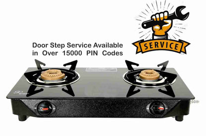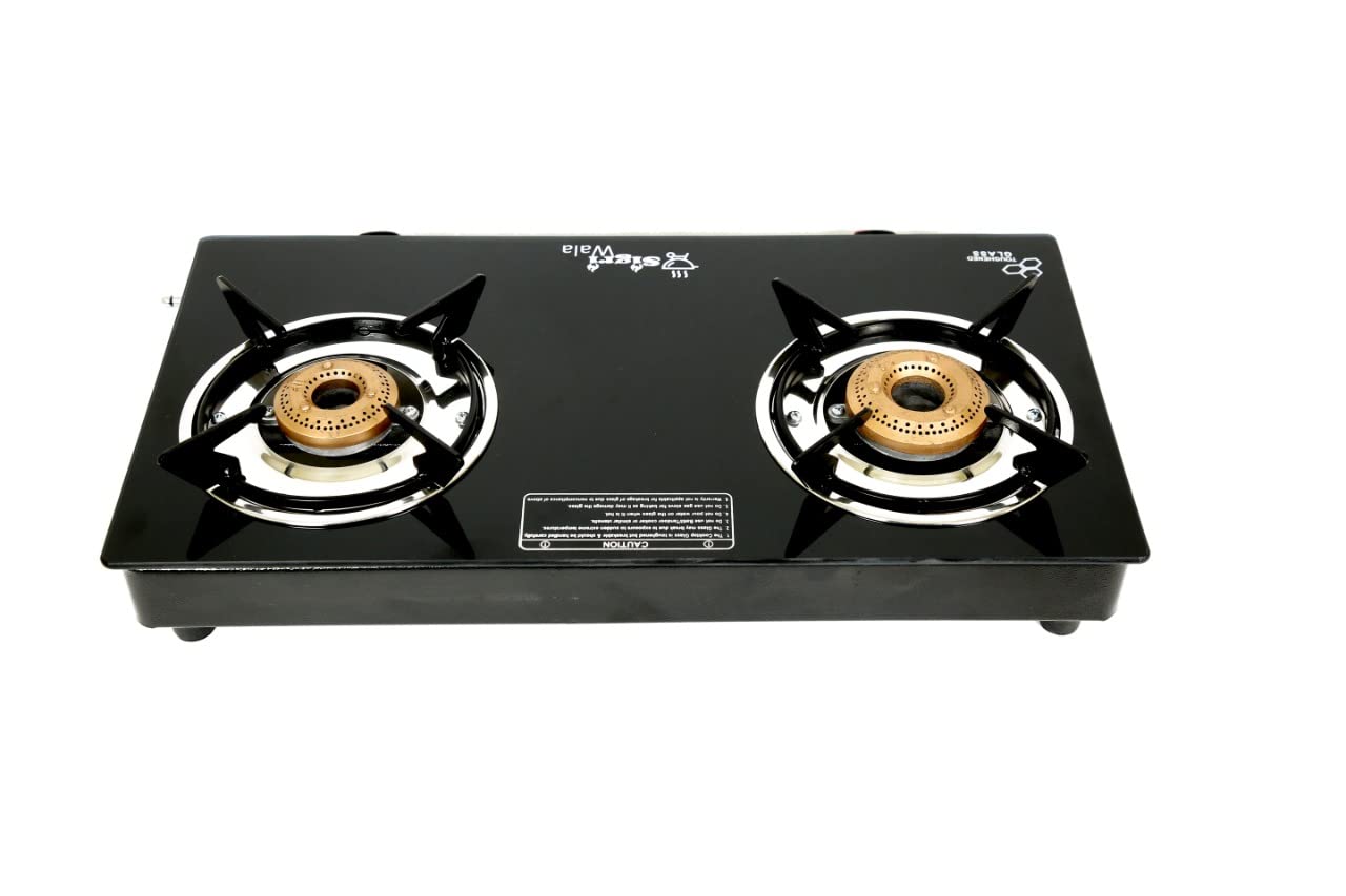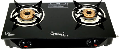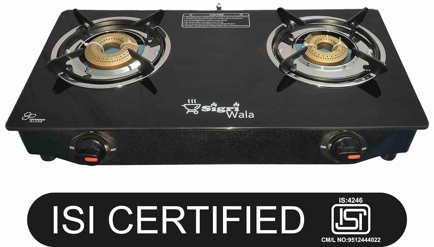 SigriWala Manual Gas Stove 2 Burner, Thermal Tempered Glass Cooktop, LPG Compatible, Black (ISI Certified, Door Step Service, 300 Days Warranty)
