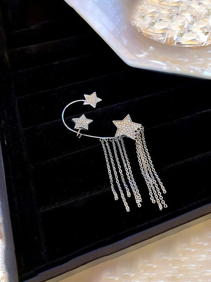 Silver Ear Cuff: Dangle Tassel Earrings with Butterfly Design | 9.7cm | For Women & Girls