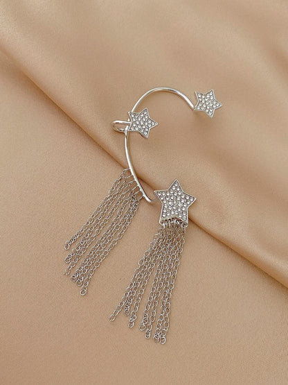 Introducing the Silver Ear Cuff designed for women and girls by Yellow Chimes. These stunning earrings feature a stylish tassel design in a silver tone, perfect for adding a touch of elegance to your outfit. With an approximate length of 9.7cm and a weight of 9.81g, these earrings offer a lightweight and comfortable wear, making them ideal for all-day use.