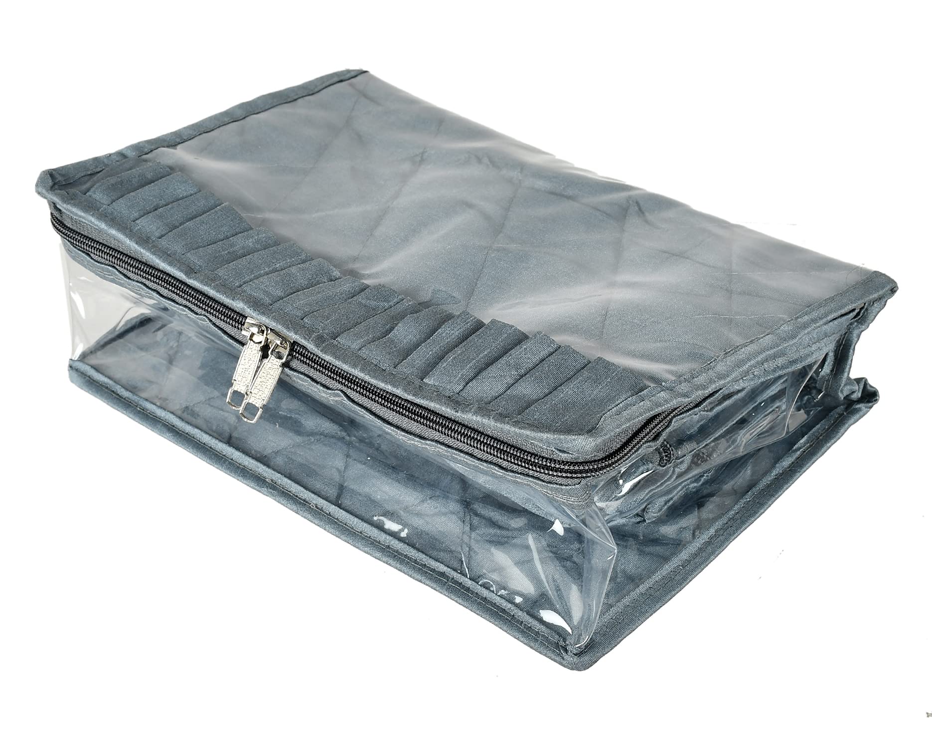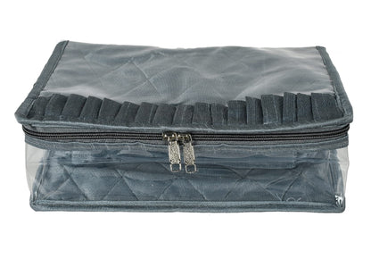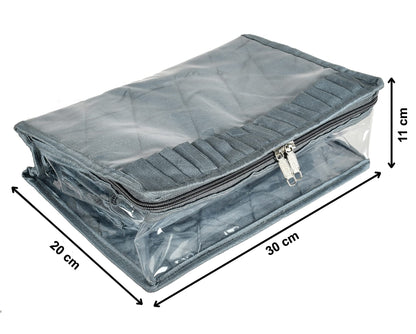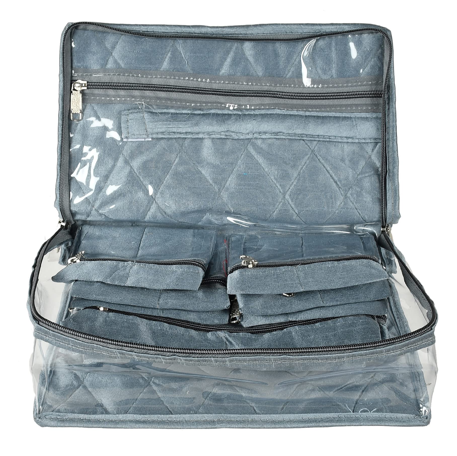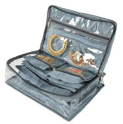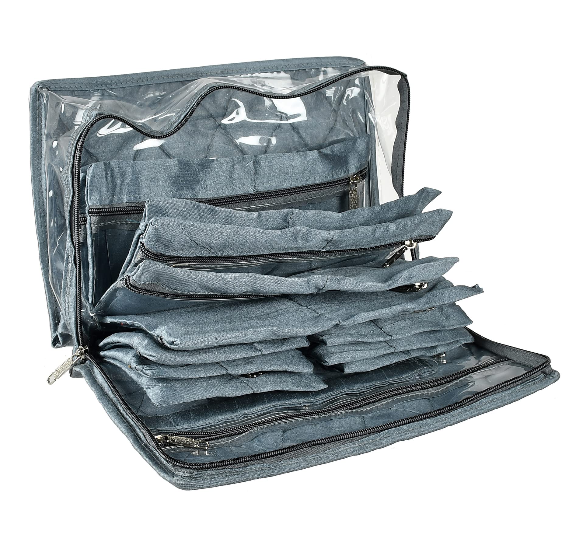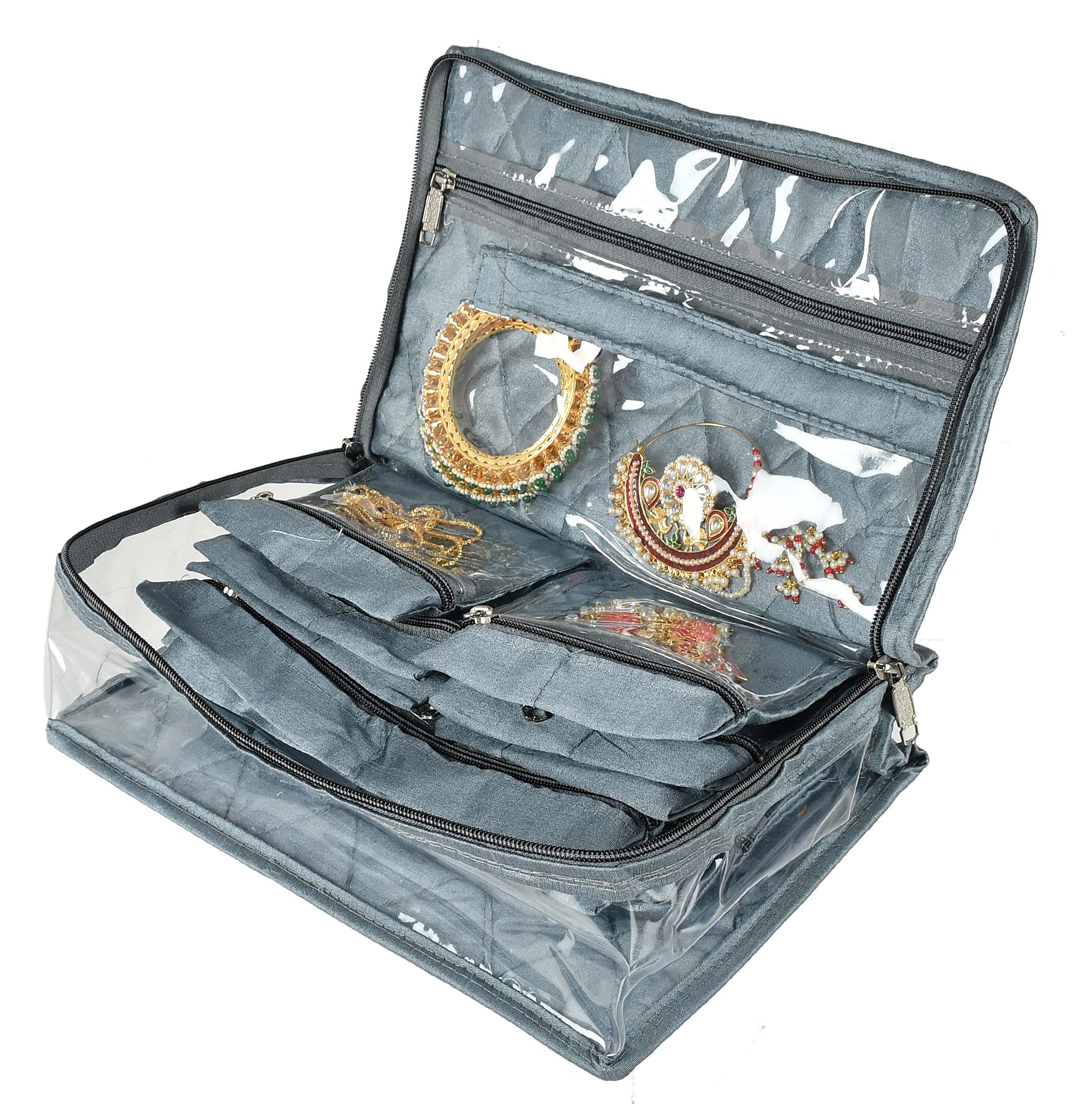 Laminated PVC Travel Jewelry Organiser|Jewelry Storage Bags for All Jewellery|Zipper Closure With 13 Transparent Pouch|Size 30 x 20 x 11Cm, Pack of 1 (Grey)