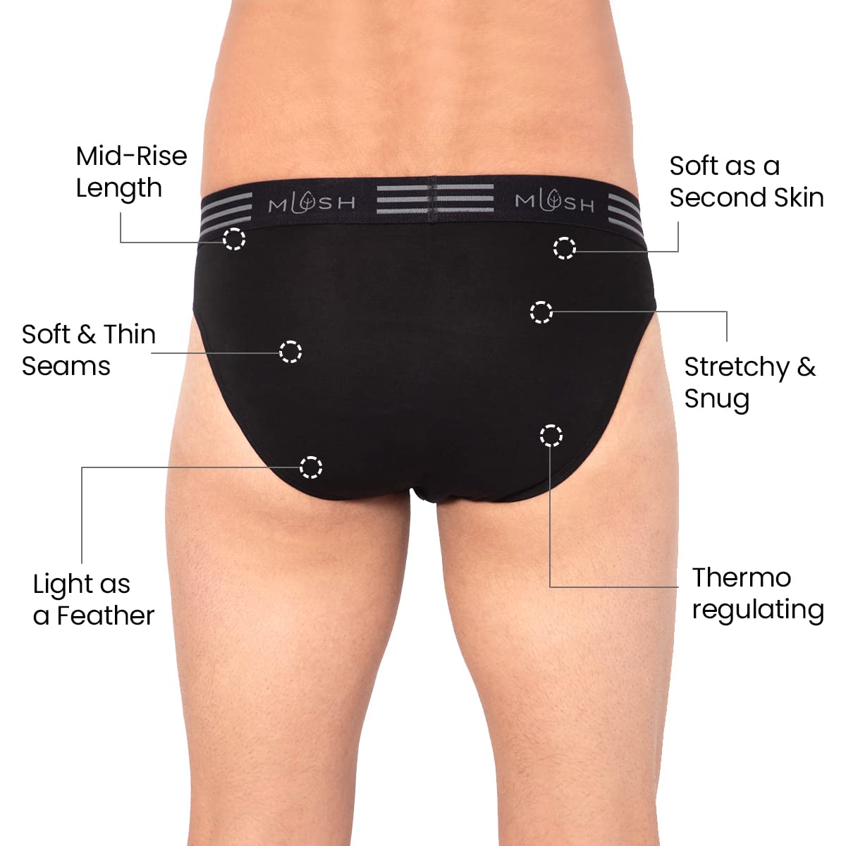Mush Ultra Soft, Breathable, Feather Light Men's Bamboo Brief || Naturally Anti-Odor and Anti-Microbial Bamboo Innerwear Pack of 1 (M, Black)