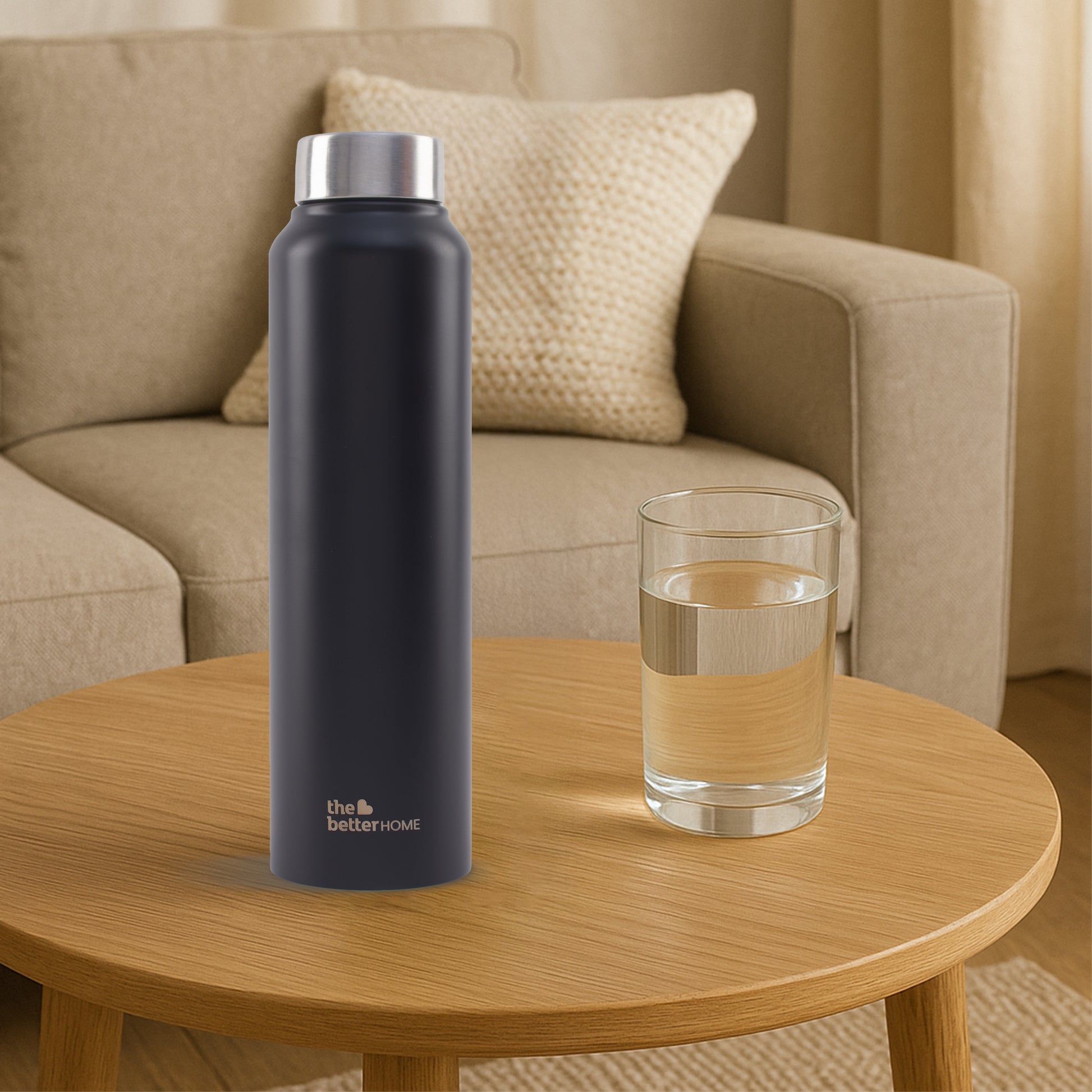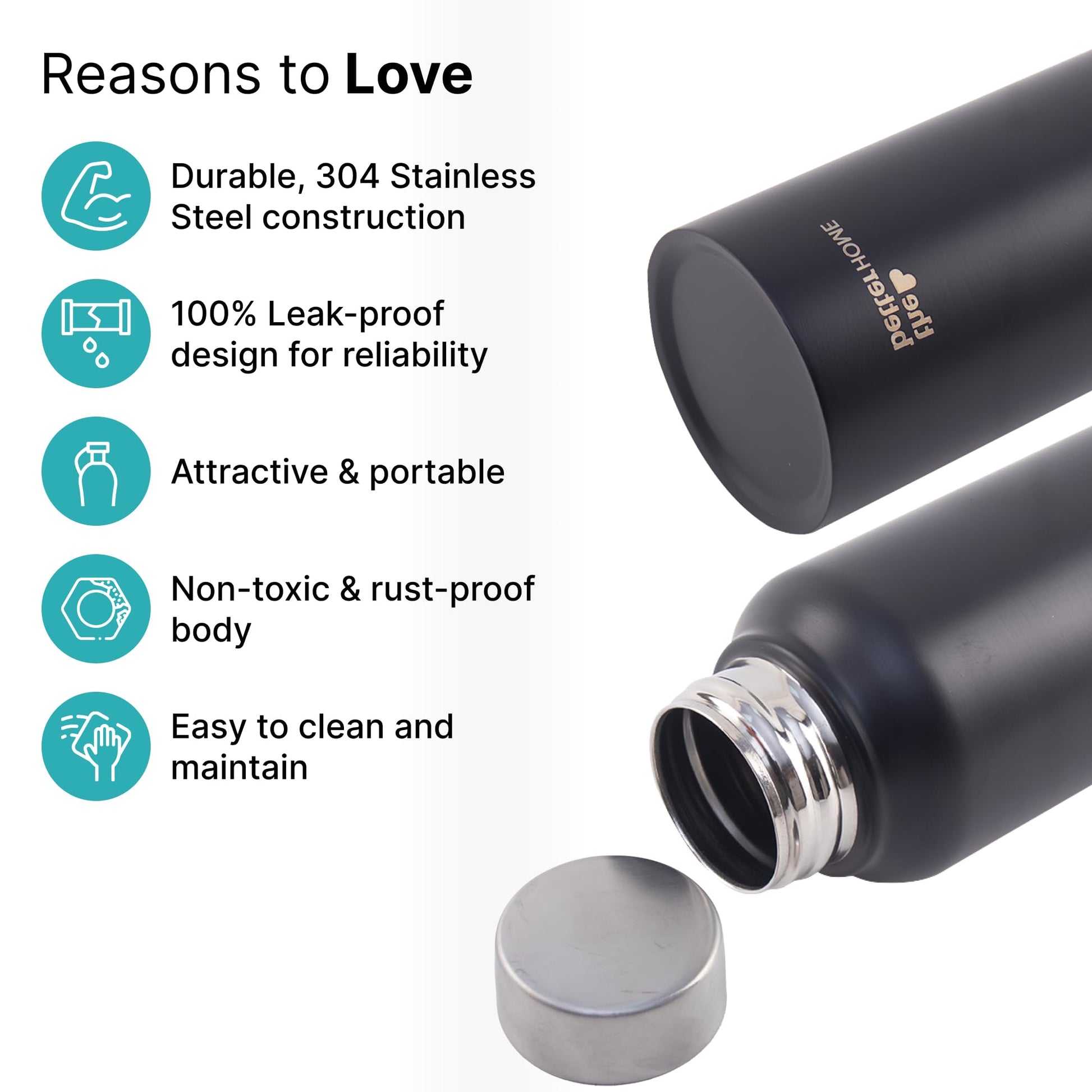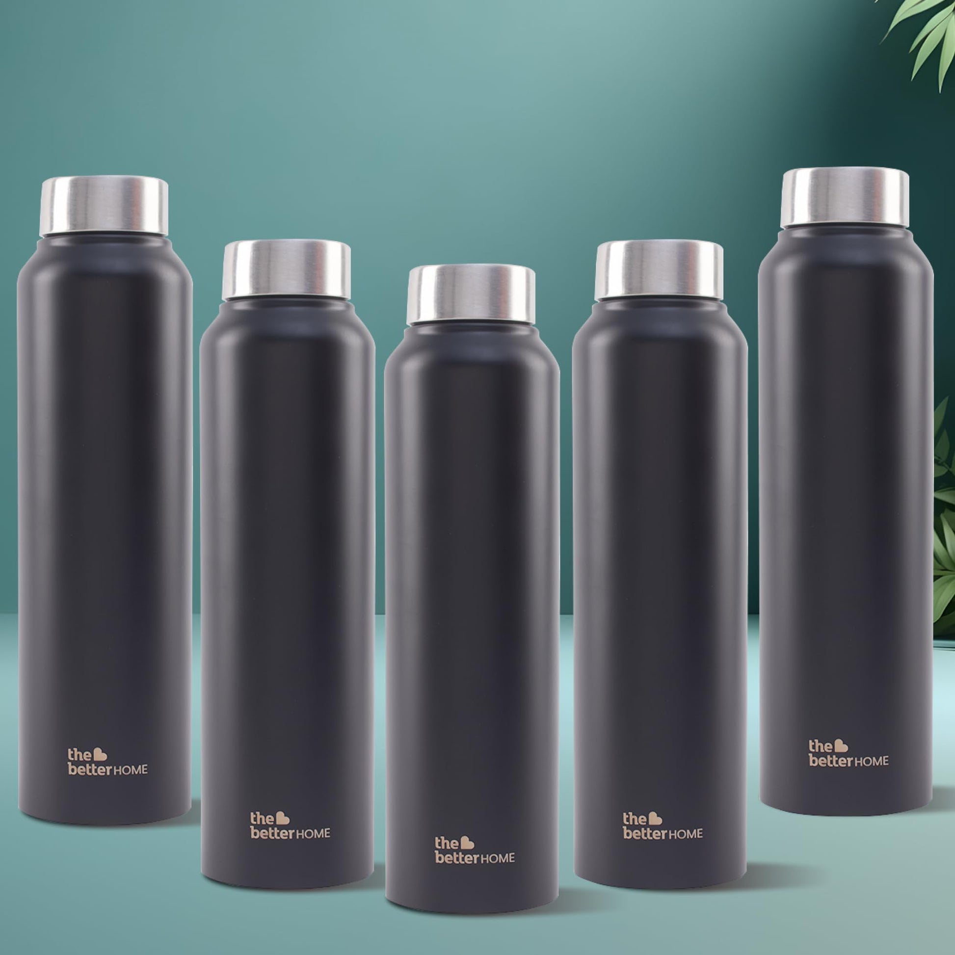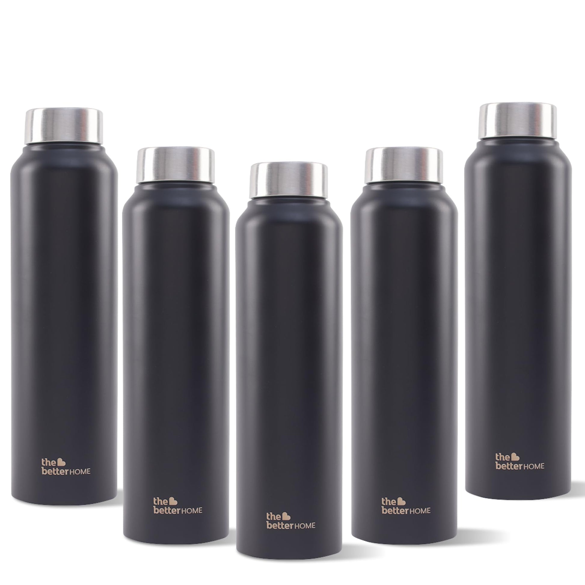 The Better Home 1000 Stainless Steel Water Bottle 1 Litre | Rust-Proof, Lightweight, Leak-Proof & Durable | Eco-Friendly, Non-Toxic & BPA Free Water Bottles 1+ Litre | Black (Pack of 1)