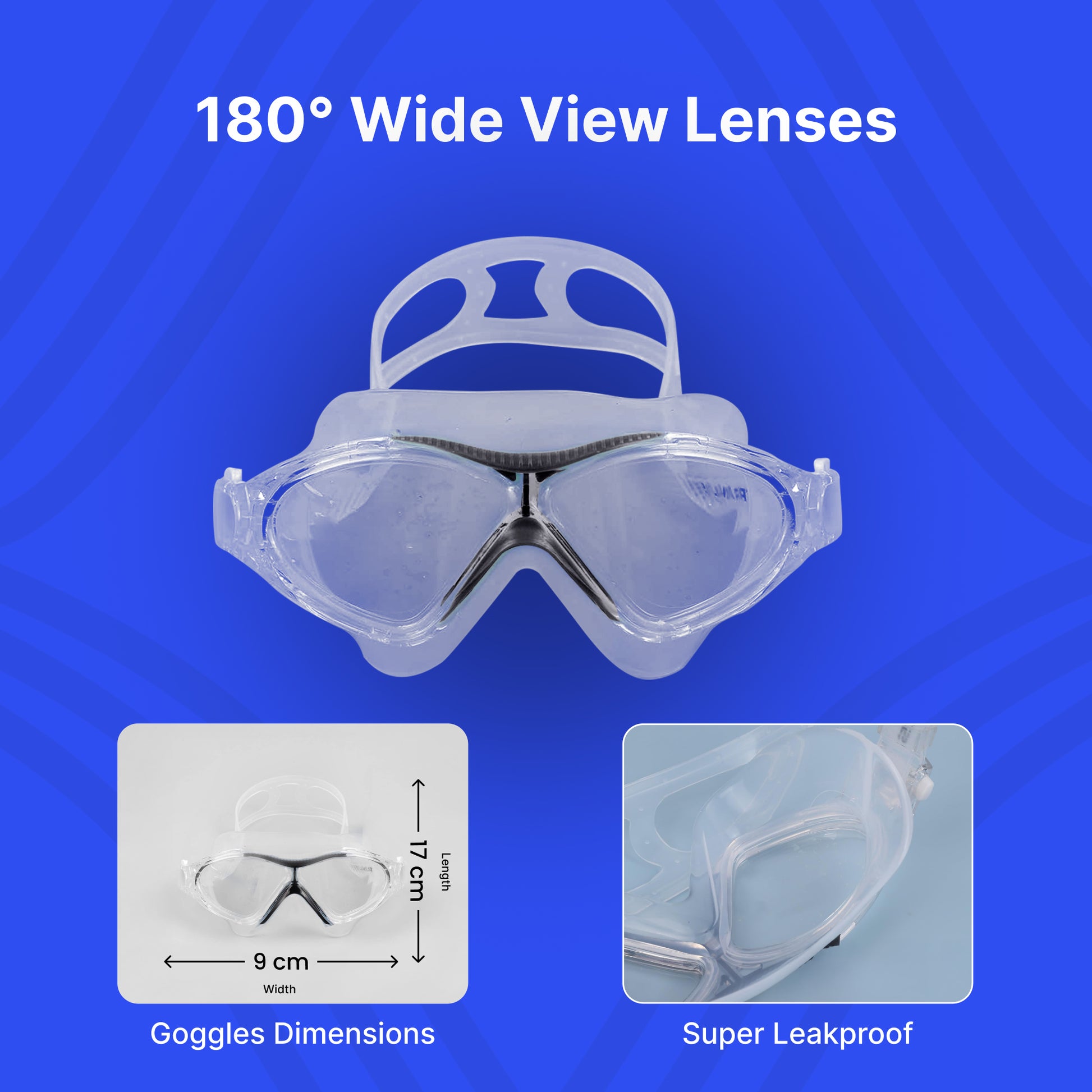 • Crystal Clear Vision: Enjoy unobstructed clarity underwater with our wide-view clear lenses that allow you to focus on the incredible underwater scenery.