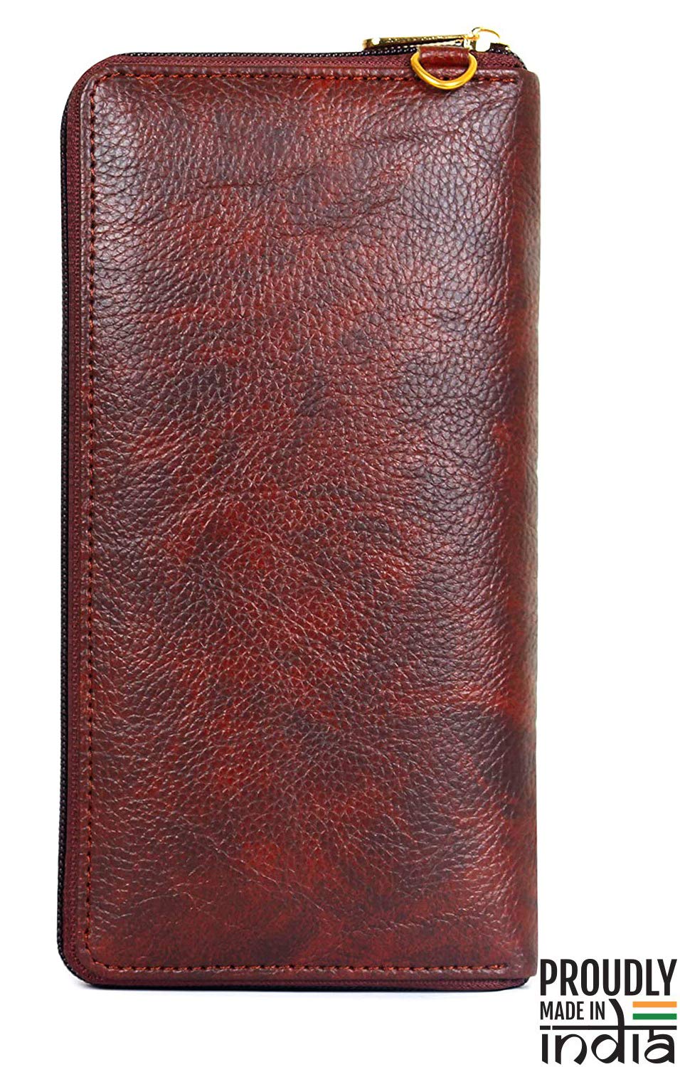• CONVENIENT DESIGN: Features a zip-around main compartment with twin partitions, multiple card slots, and an essential front phone pocket with snap flap closure.