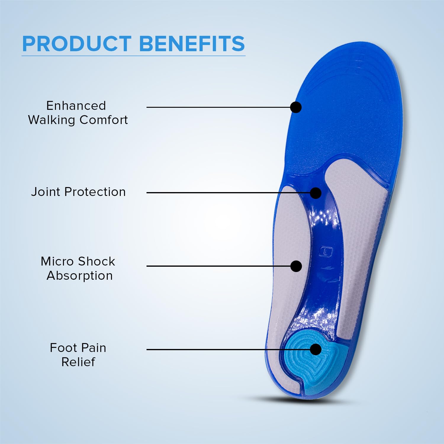 • ENHANCED WALKING COMFORT: Dr Foot’s Gel Insoles provide continuous cushioning and shock absorption, supporting foot health and comfort throughout the day.