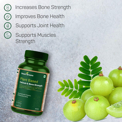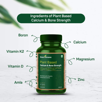 Smart Greens Plant Based Calcium & Bone Strength with Calcium, Magnesium, Zinc, Boron, Vitamin K2, Vitamin D & Amla – 60 Tablets