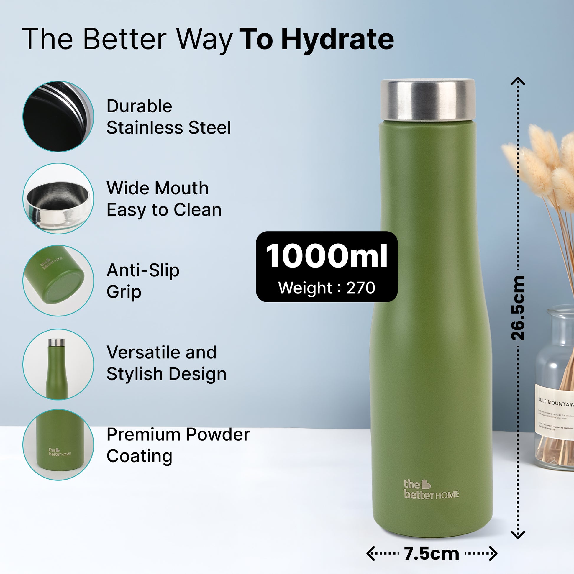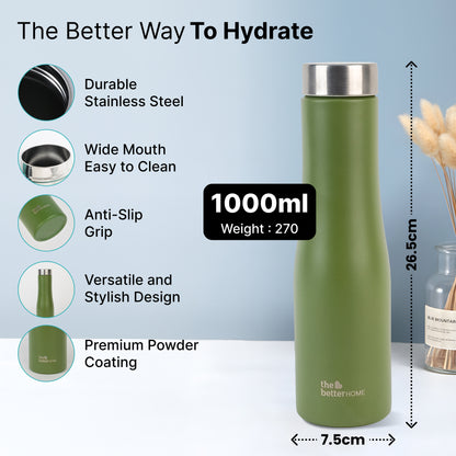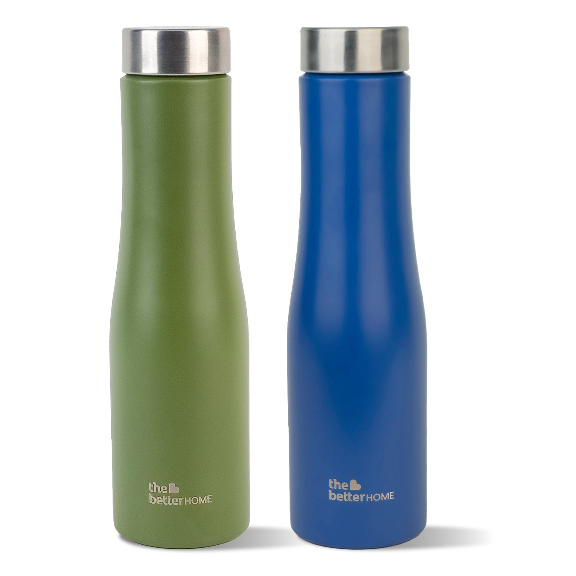The Better Home Splash Stainless Steel Water Bottle 1 Litre | Leak Proof, Durable & Rust Proof | Non-Toxic & BPA Free Steel Bottles| Steel Water Bottle | Dark Blue and Military Green(Pack of 2)