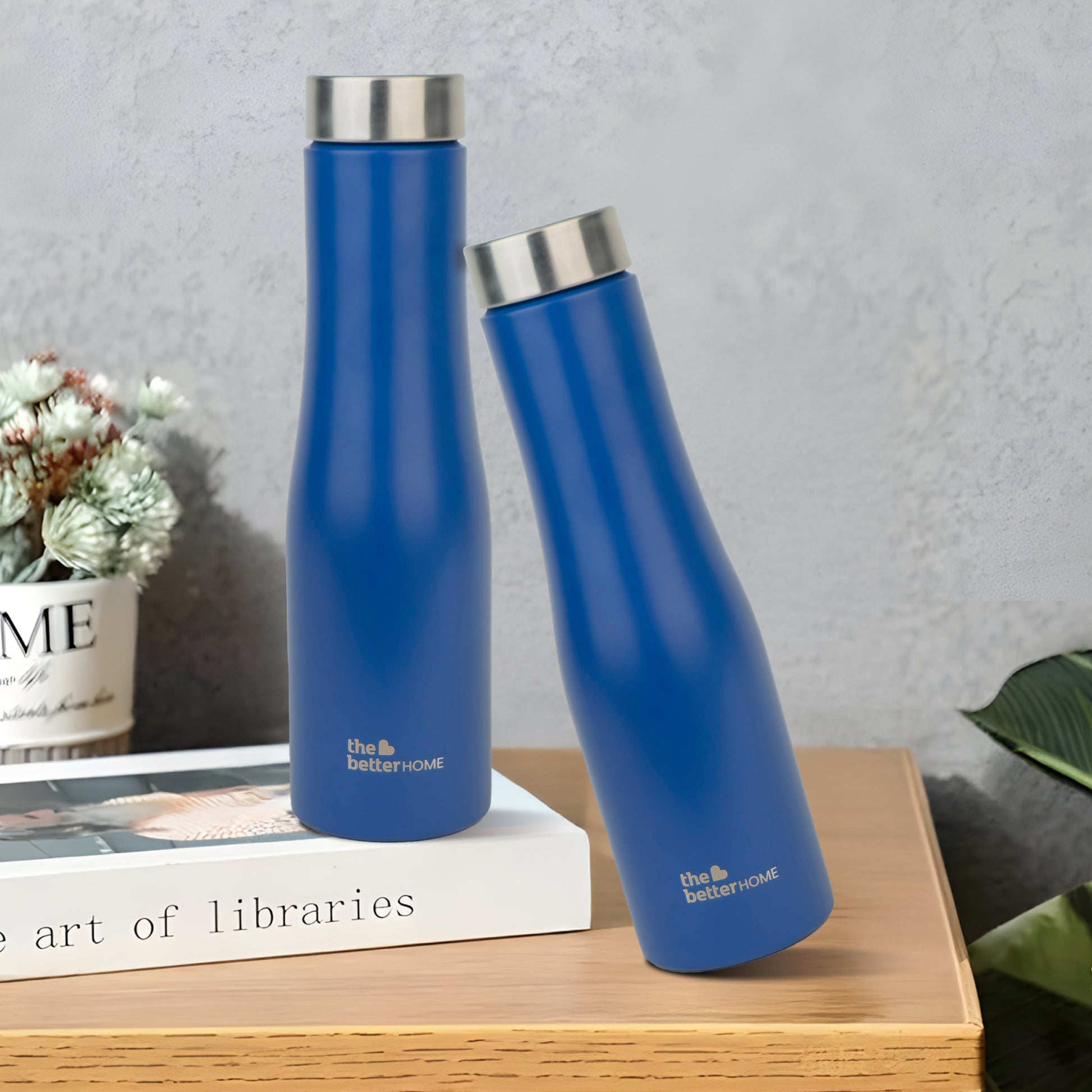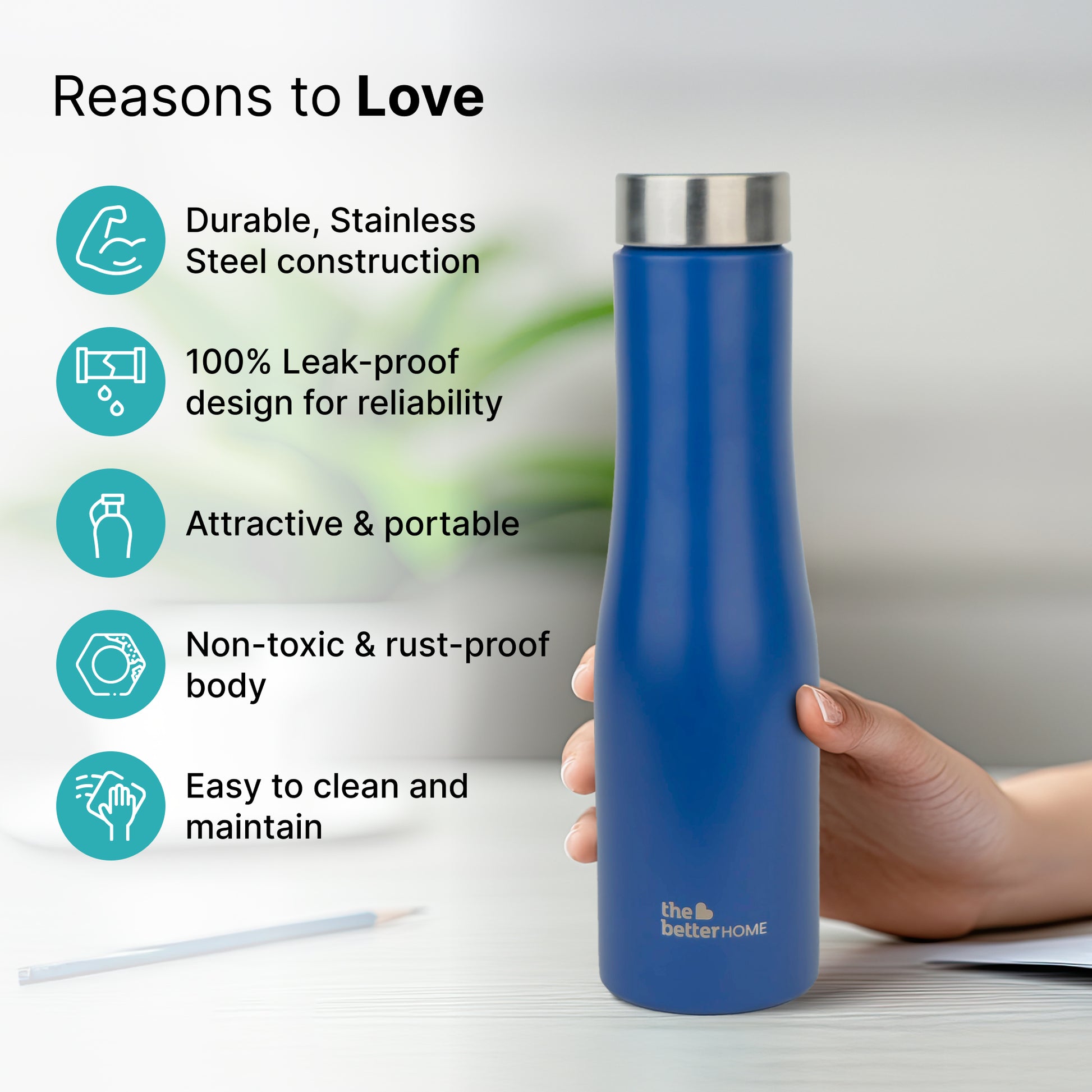 The Better Home Splash Stainless Steel Water Bottle 1 Litre | Leak Proof, Durable & Rust Proof | Non-Toxic & BPA Free Steel Bottles| Steel Water Bottle | Dark Blue(Pack of 2)
