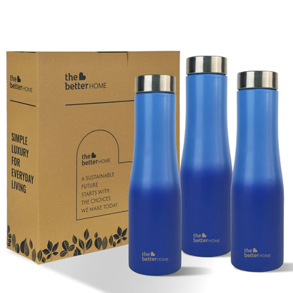 The Better Home Splash Stainless Steel Water Bottle 1 Litre | Leak Proof, Durable & Rust Proof | Non-Toxic & BPA Free Steel Bottles| Steel Water Bottle | Dual Blue (Pack of 3)