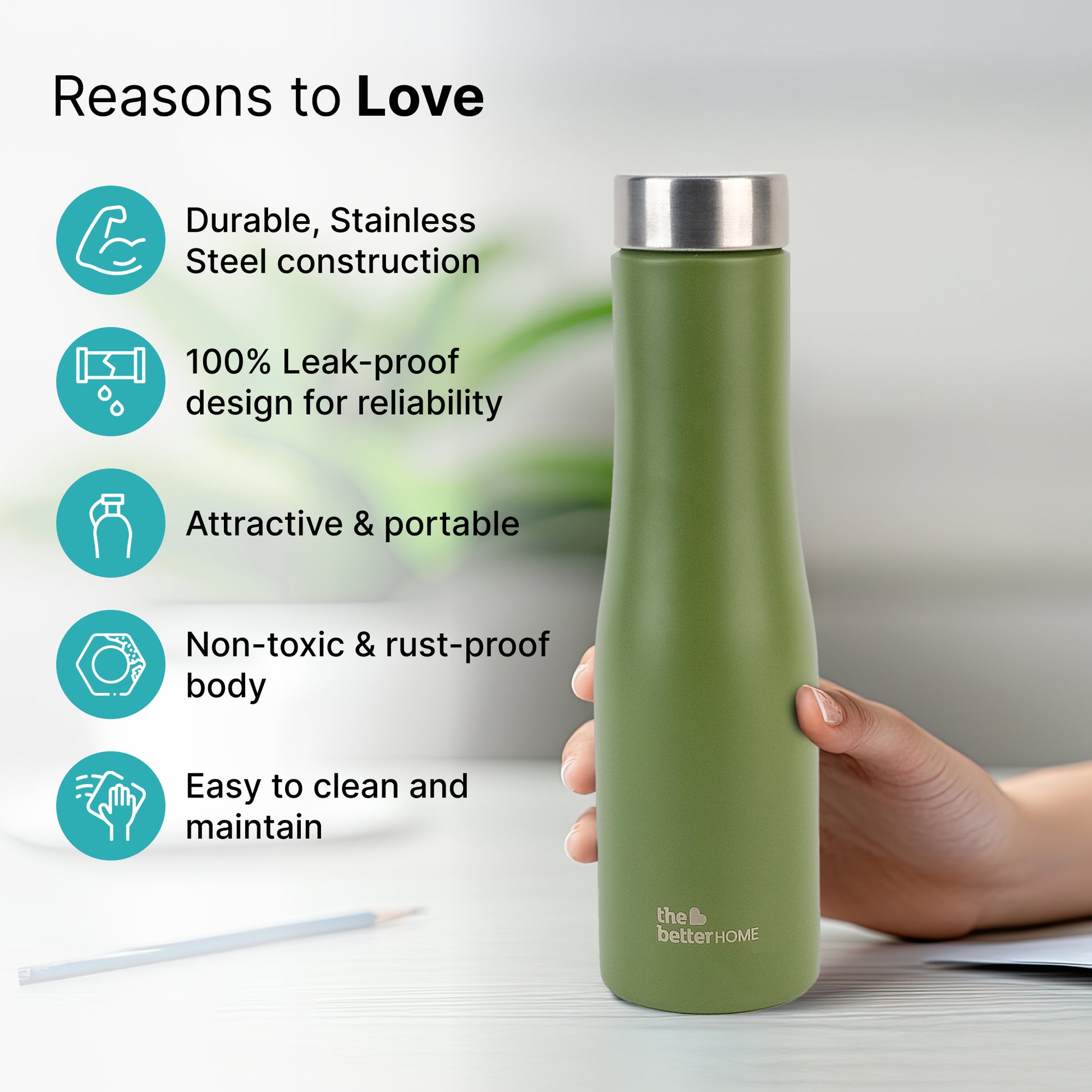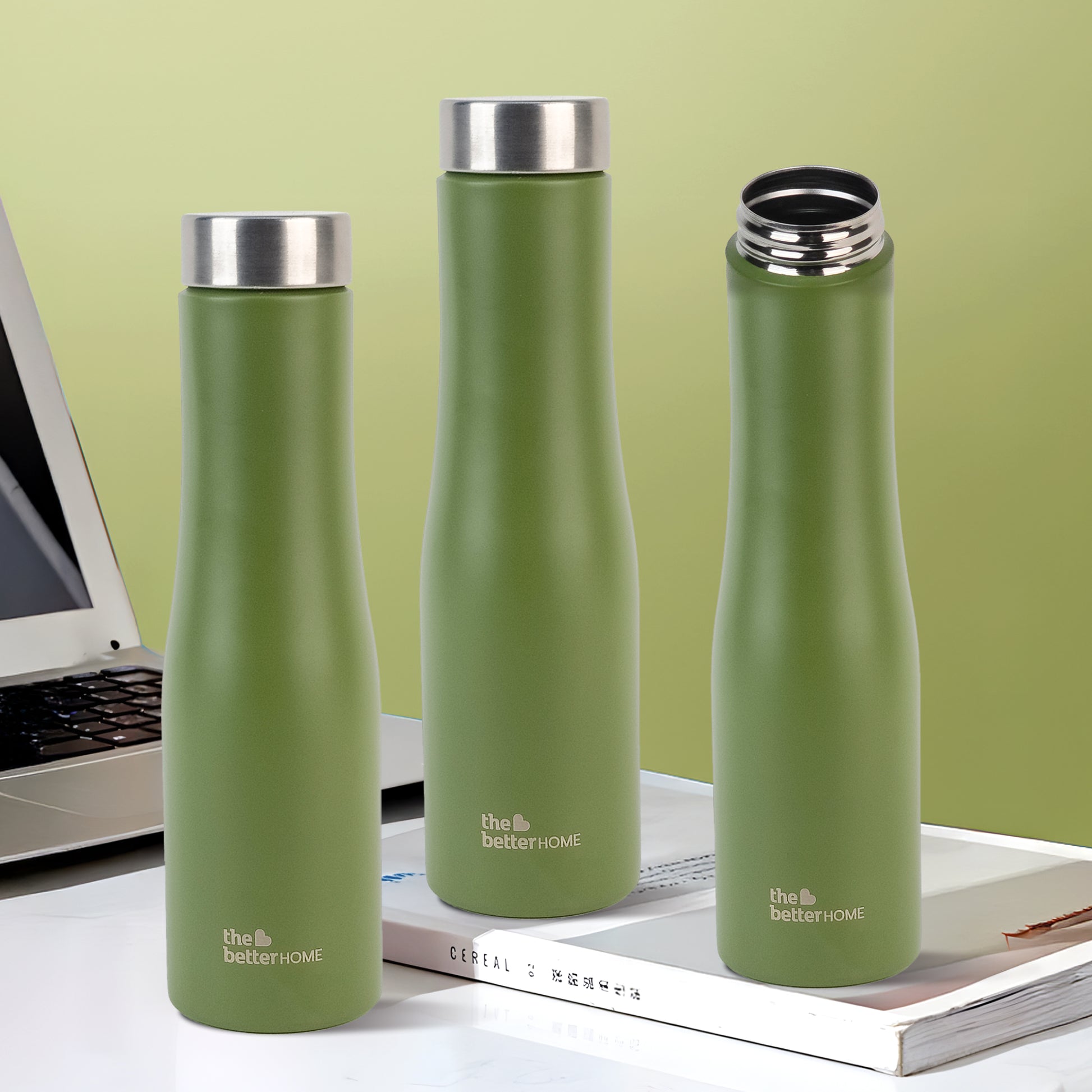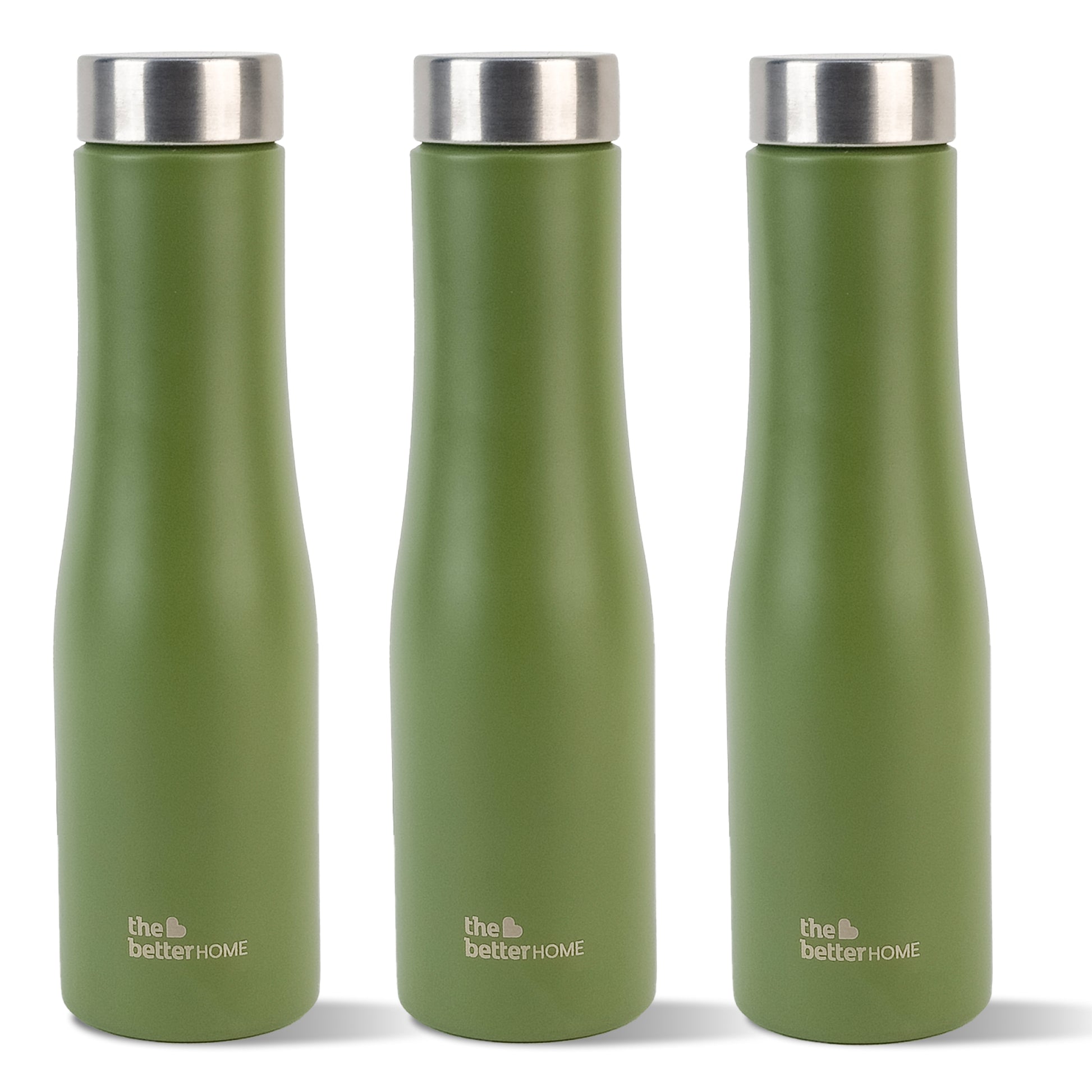 The Better Home Splash Stainless Steel Water Bottle 1 Litre | Leak Proof, Durable & Rust Proof | Non-Toxic & BPA Free Steel Bottles| Steel Water Bottle | Military Green(Pack of 3)