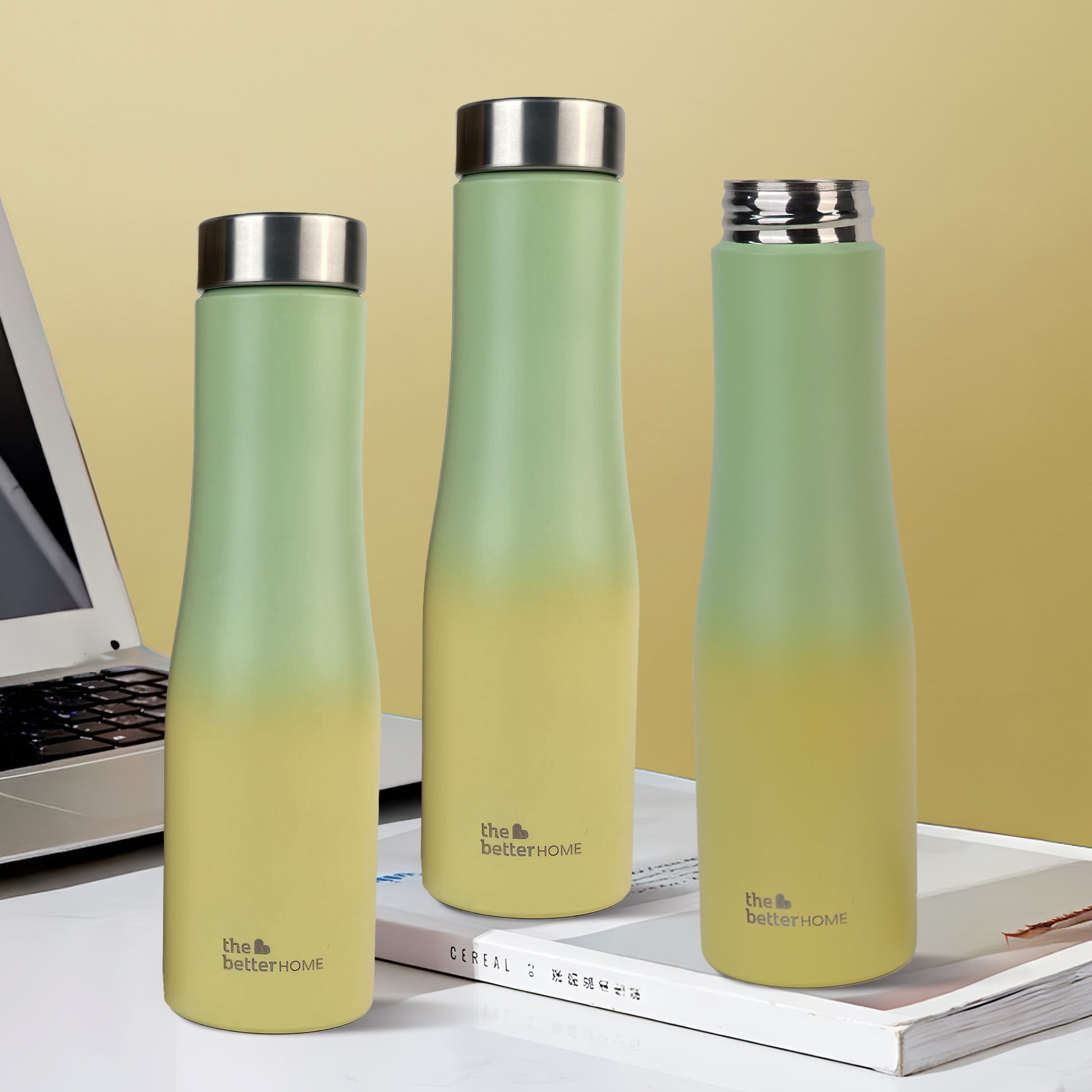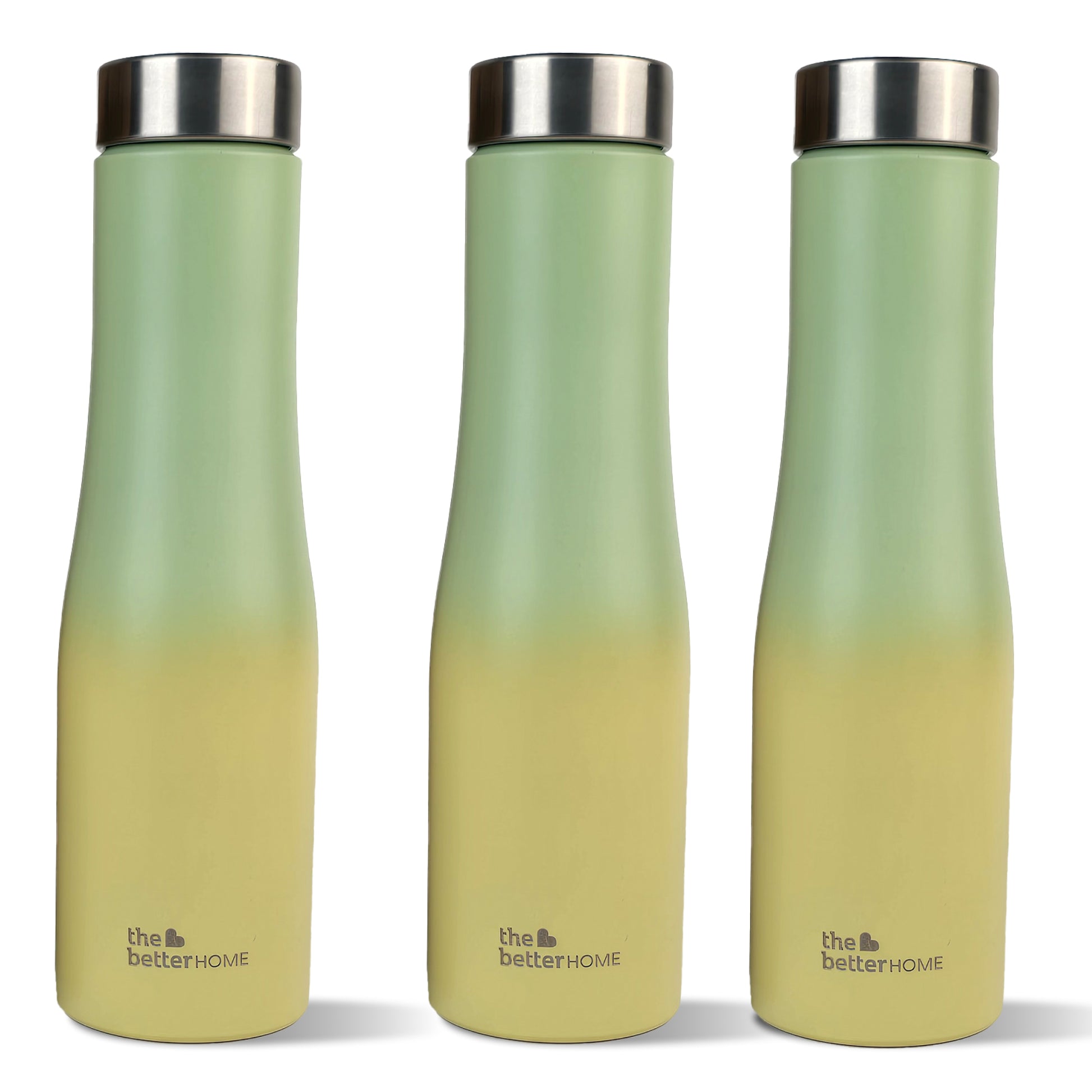 The Better Home Splash Stainless Steel Water Bottle 1 Litre | Leak Proof, Durable & Rust Proof | Non-Toxic & BPA Free Steel Bottles| Steel Water Bottle | Dual Lemon Green (Pack of 3)