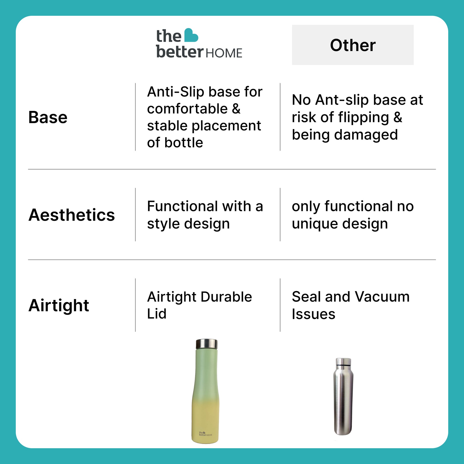 Introducing the Splash Stainless Steel Water Bottles by The Better Home. This pack of 3 features 1 Litre bottles crafted from high-quality 201 Stainless Steel, ensuring durability and style. The dual lemon green color is not only attractive but also functional, making these bottles perfect for hydration on the go.