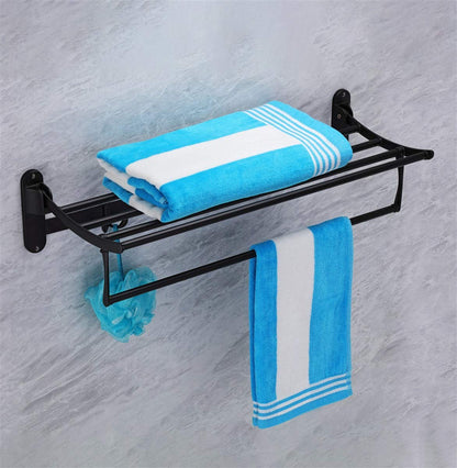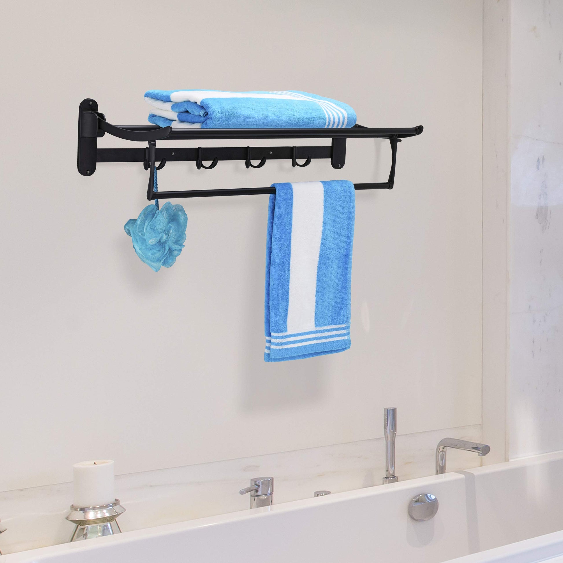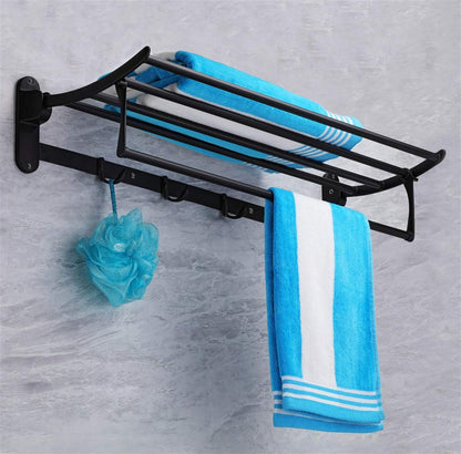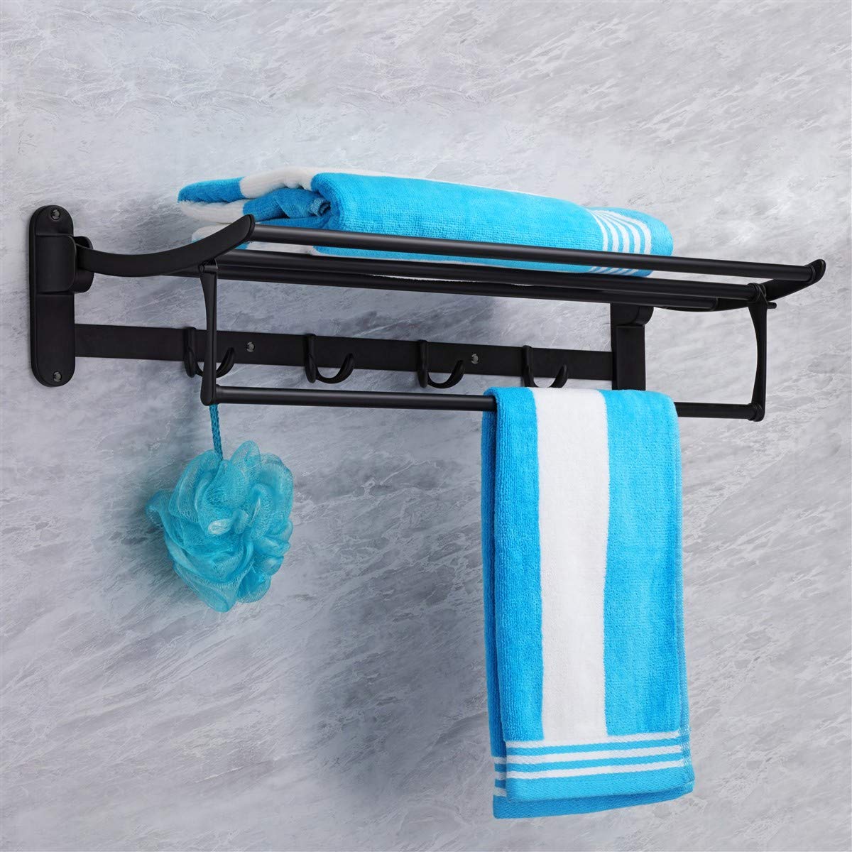 Stailness Steel Folding Towel Rack for Bathroom/Towel Rod with Hooks/Towel Stand/Towel Holder/Bathroom Accessories (24 inch) Matt Black