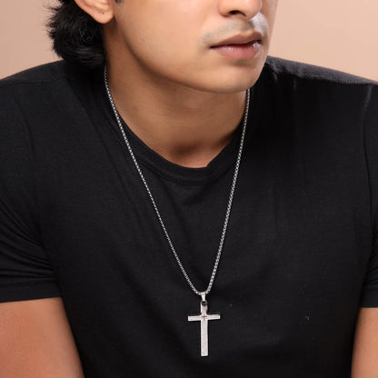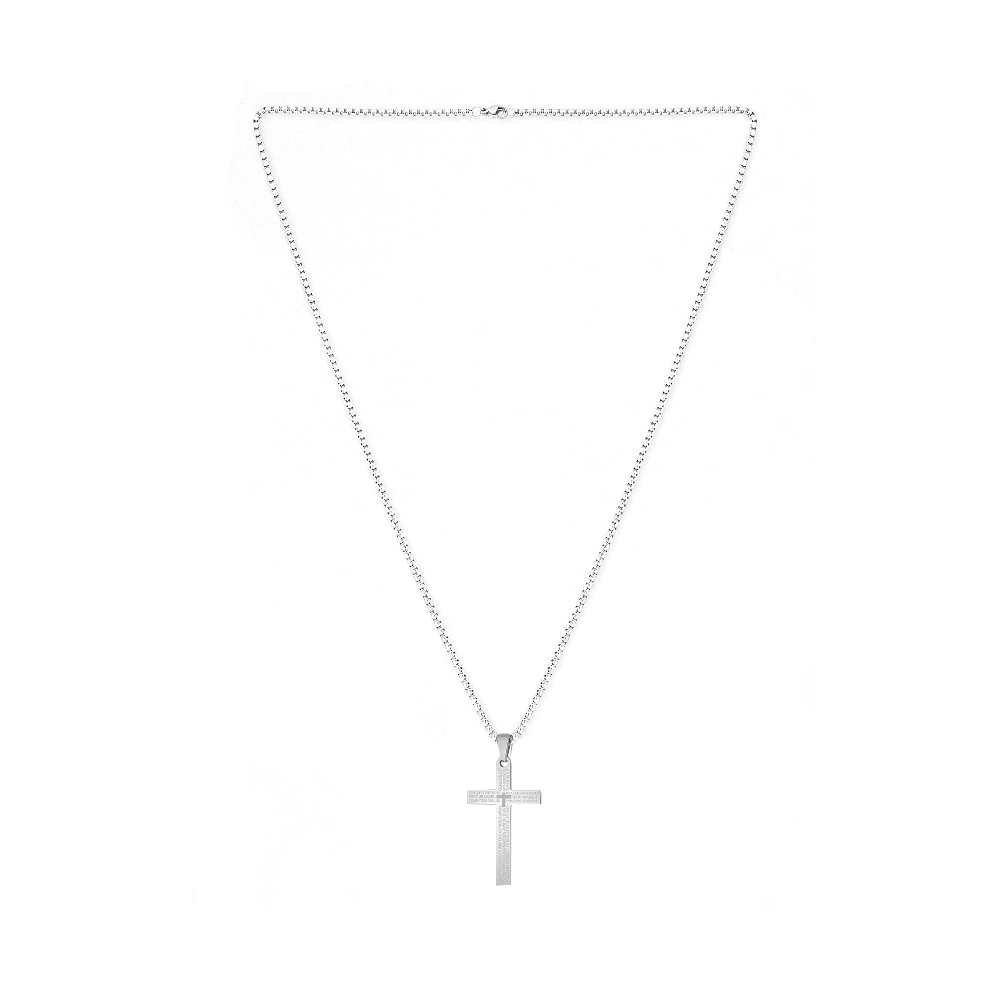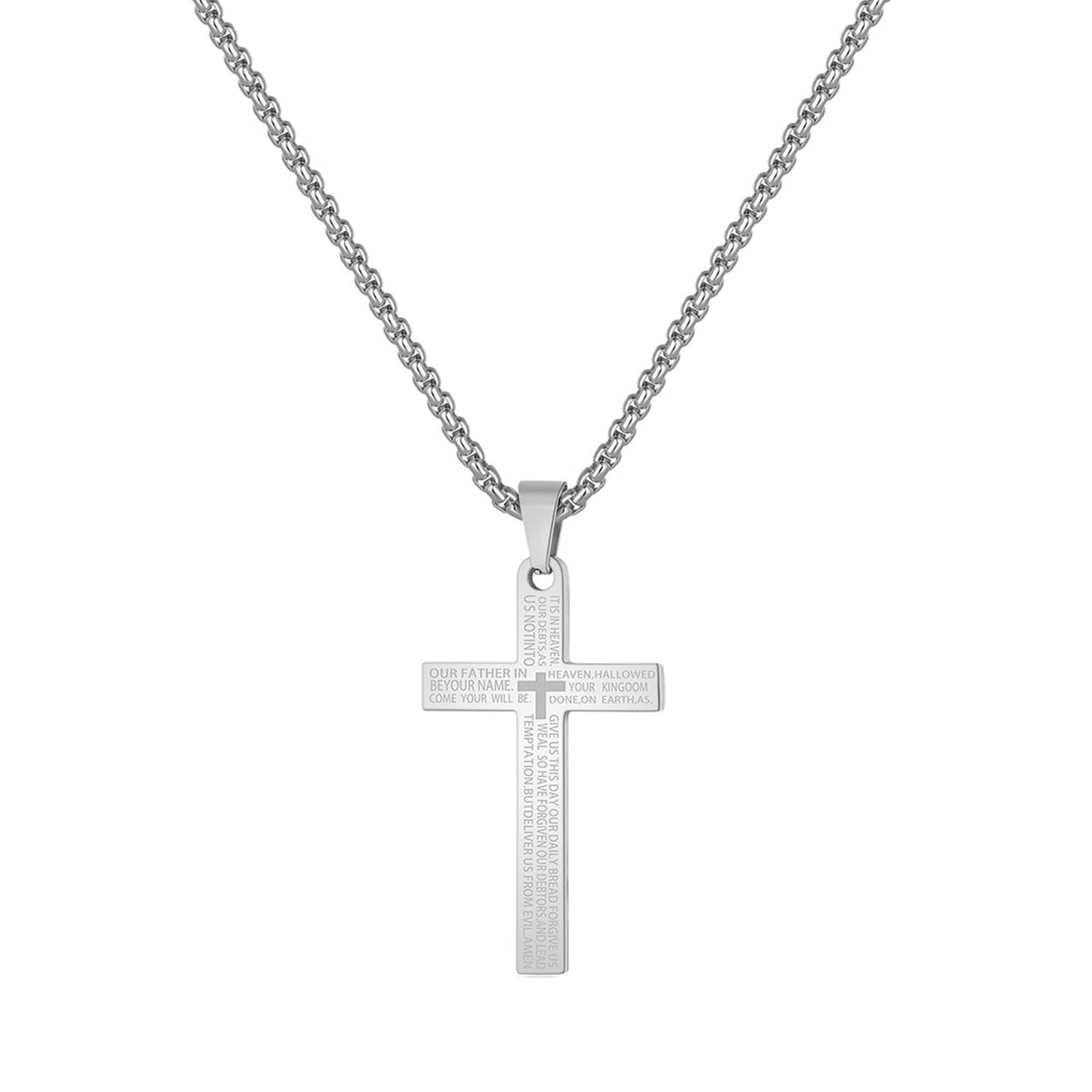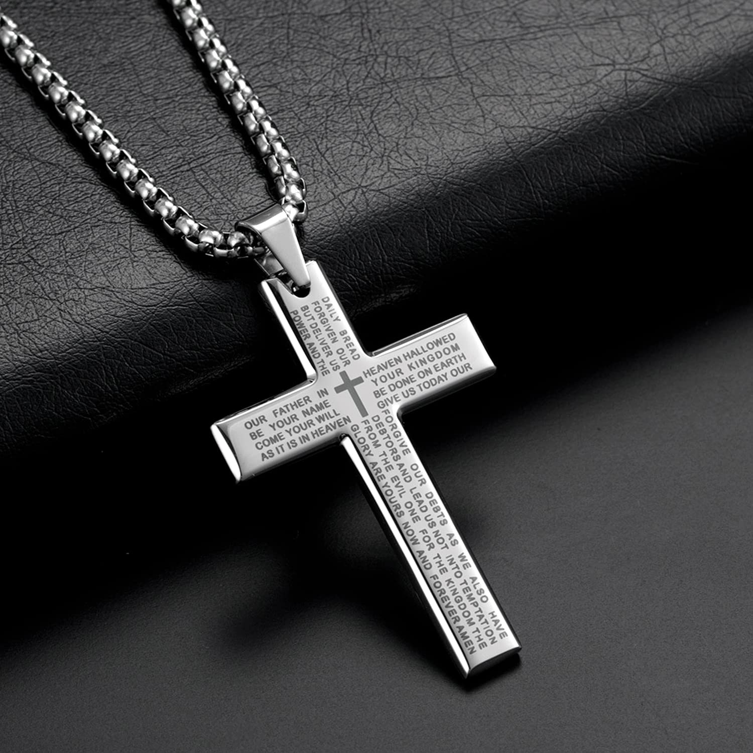 Pendant for Men and Boys Silver Pendants For Men | Stainless Steel Lord's Prayer Cross Pendant Necklace Chain for Men | Birthday Gift for Men and Boys Anniversary Gift for Husband