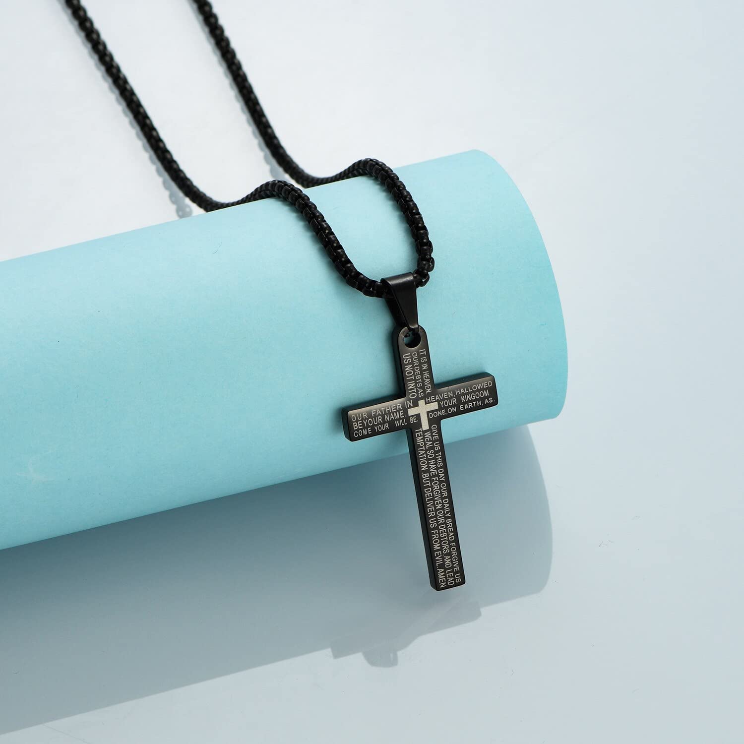 • ENGRAVED LORD'S PRAYER: The cross pendant showcases an engraved English Lord's Prayer, adding a spiritual element to the piece.