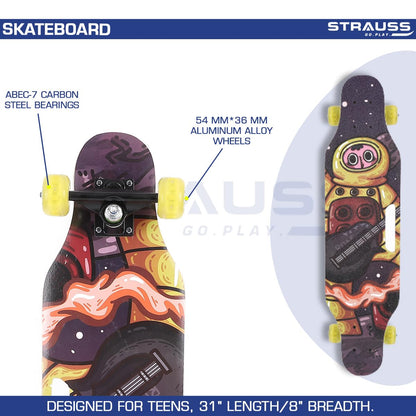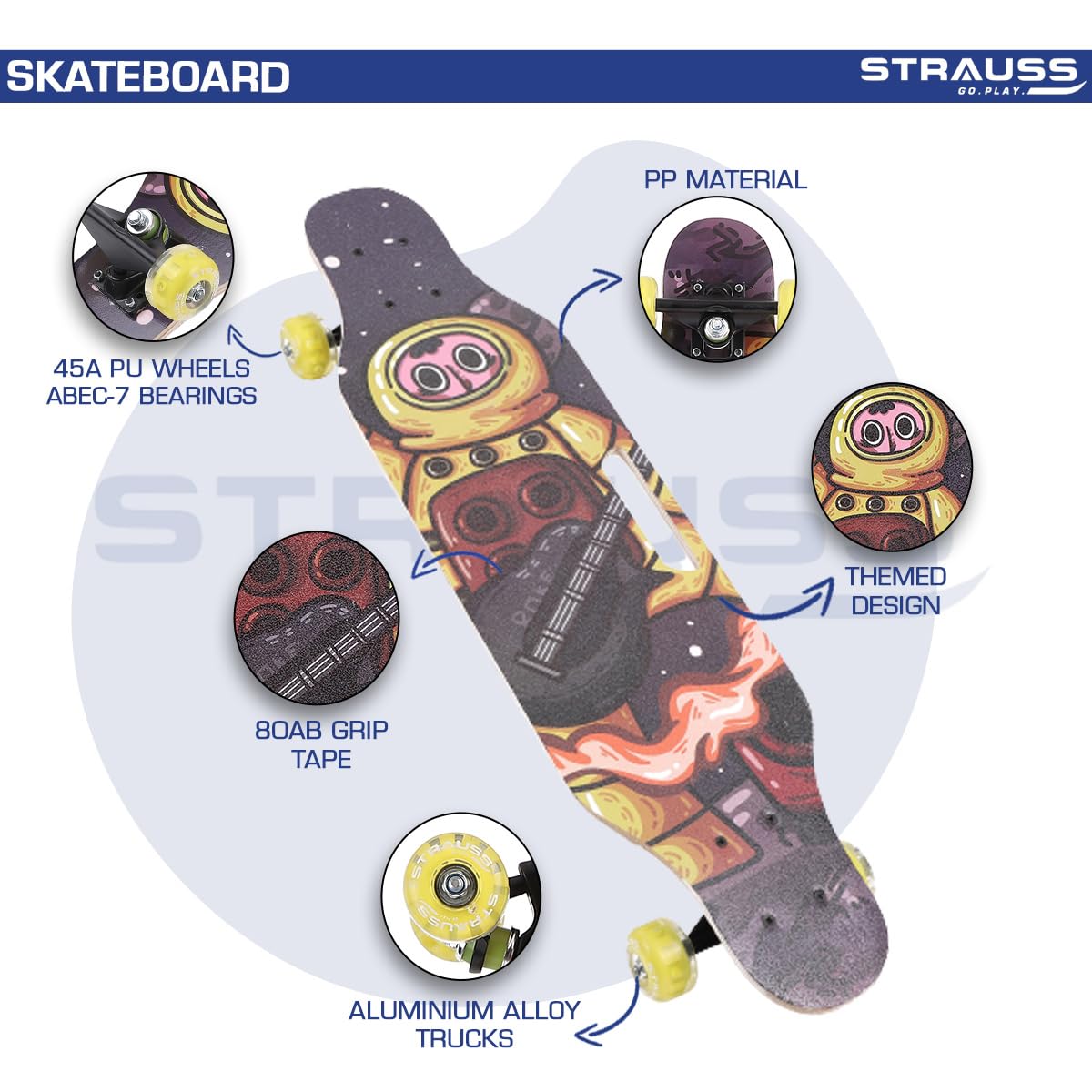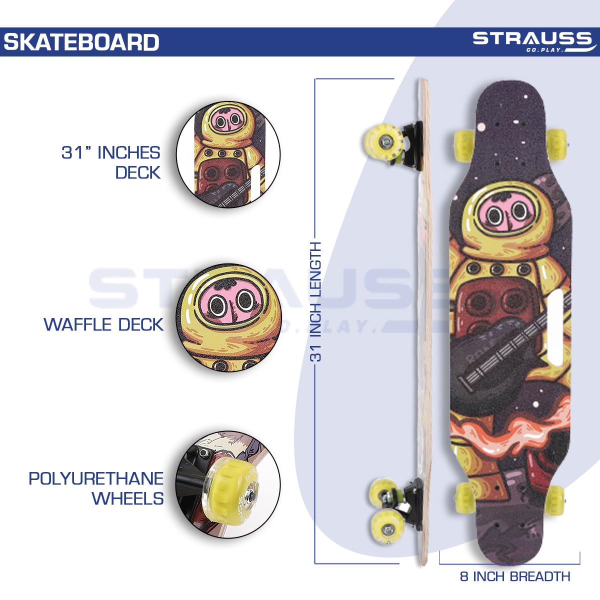 STRAUSS Plastic Spunkz Skateboard Penny Skateboard|Casterboard|Hoverboard Anti-Skid Board with High Precision Bearings Wheels with Light Ideal for 8 Years and Above(31 X 8 Inch),(Astronaut),Multicolor