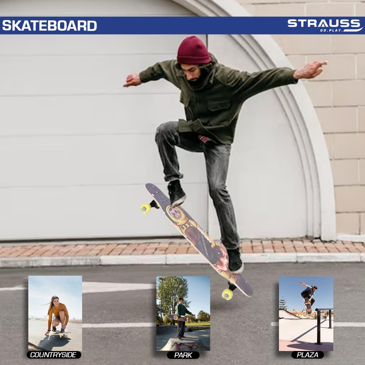 This STRAUSS skateboard is suitable for skaters aged 8 years and above, providing endless fun for both kids and adults. Elevate your skating skills and stand out on the streets with the STRAUSS Anti-Skid Skateboard!