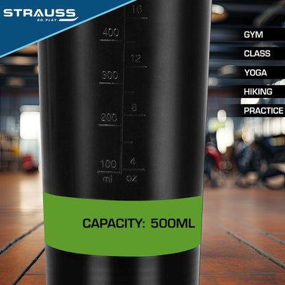 Introducing the 500ml STRAUSS Spider Gym Shaker Bottle by Strauss Sports, designed to enhance your hydration experience during workouts. This shaker bottle features a dual-compartment design that allows you to carry your protein powder, BCAA, and other supplements conveniently. Made from high-quality, 100% BPA-free plastic, it is both safe and durable, ensuring you stay hydrated during your gym sessions and outdoor adventures.