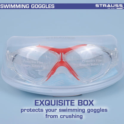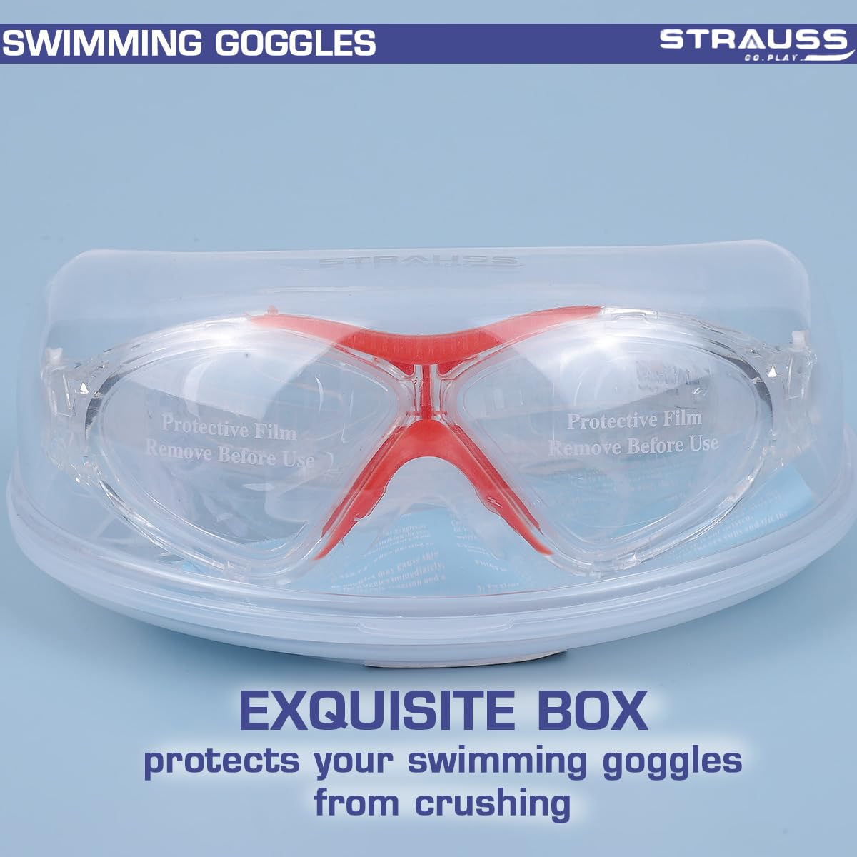 STRAUSS Swimming Goggles | Anti Fog & UV Protection | Swimming Goggles for Kids, Adults | Fully Adjustable Swimming Goggles with A Case Cover,(Red)