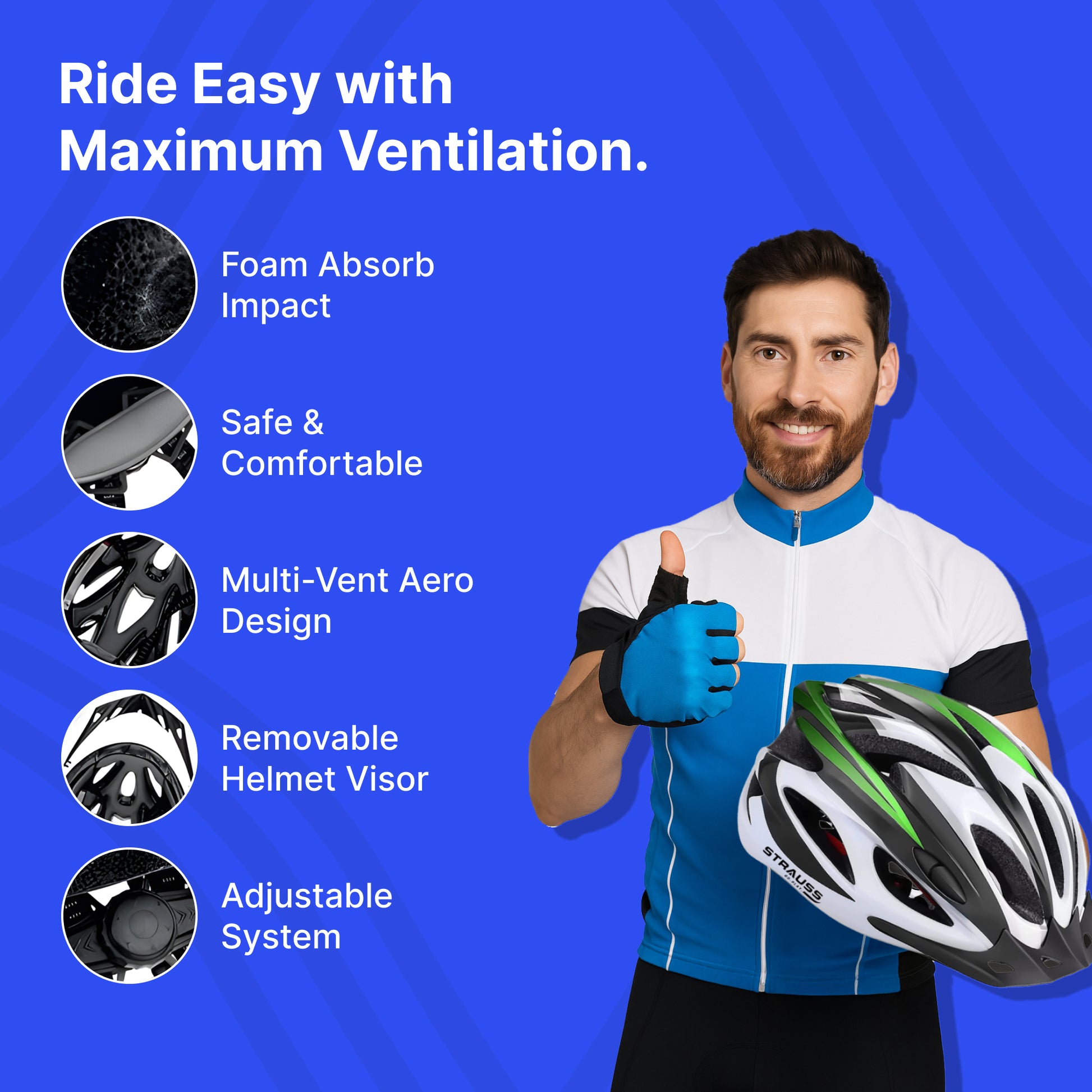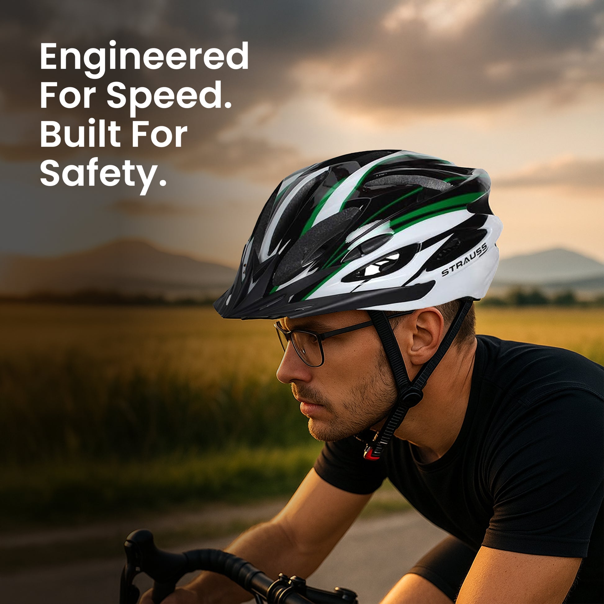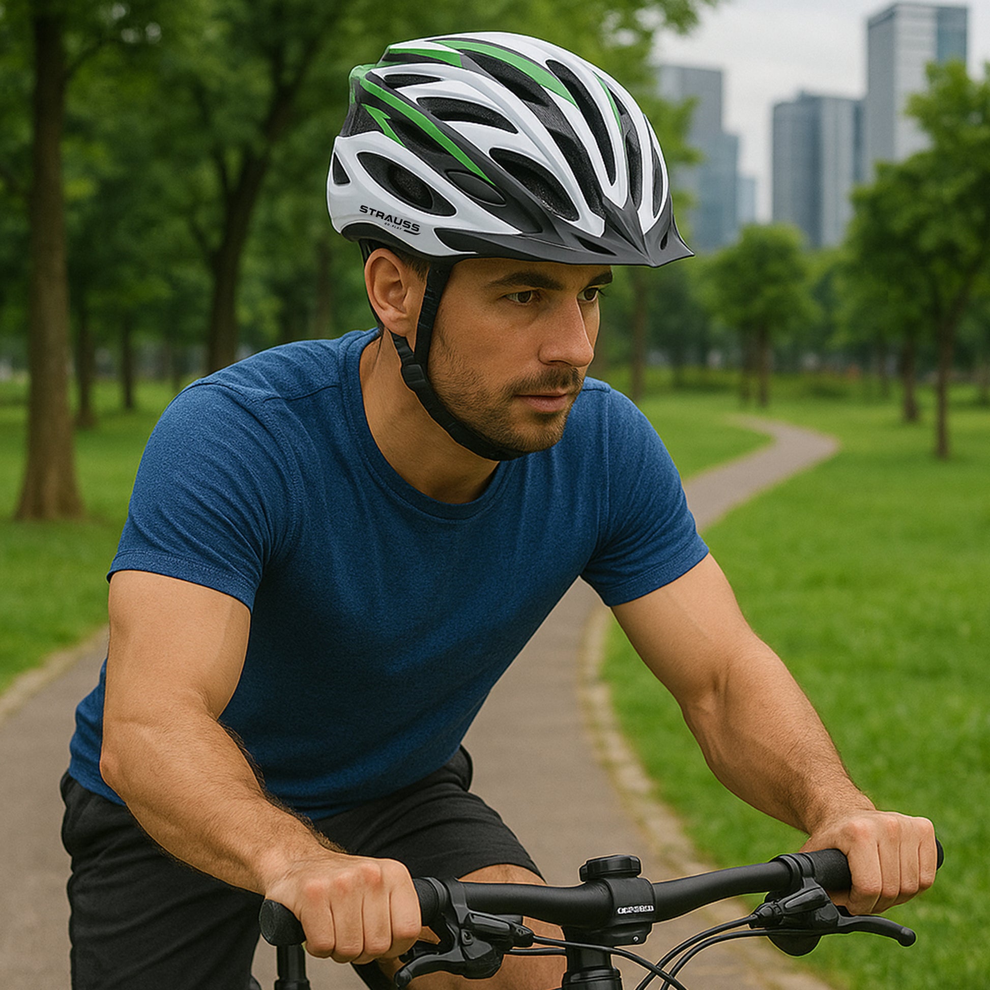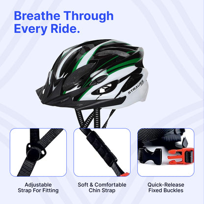 Strauss Adjustable Cycling Helmet - Lightweight, Adjustable | Detachable Visor | Unisex | Black/Green