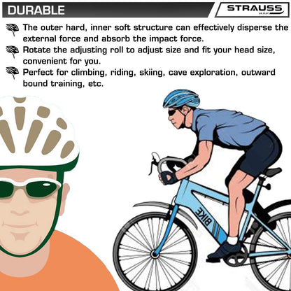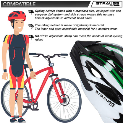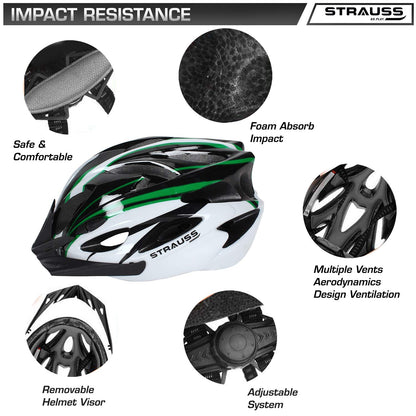 Strauss Bicycle LED Headlight with Horn | Rechargeable Front Bike Light & Horn Combo | Universal Adjustable Lamp for Cycling Safety | Horn & Headlight Functionality | 2-in-1 Device,(Black/Green)
