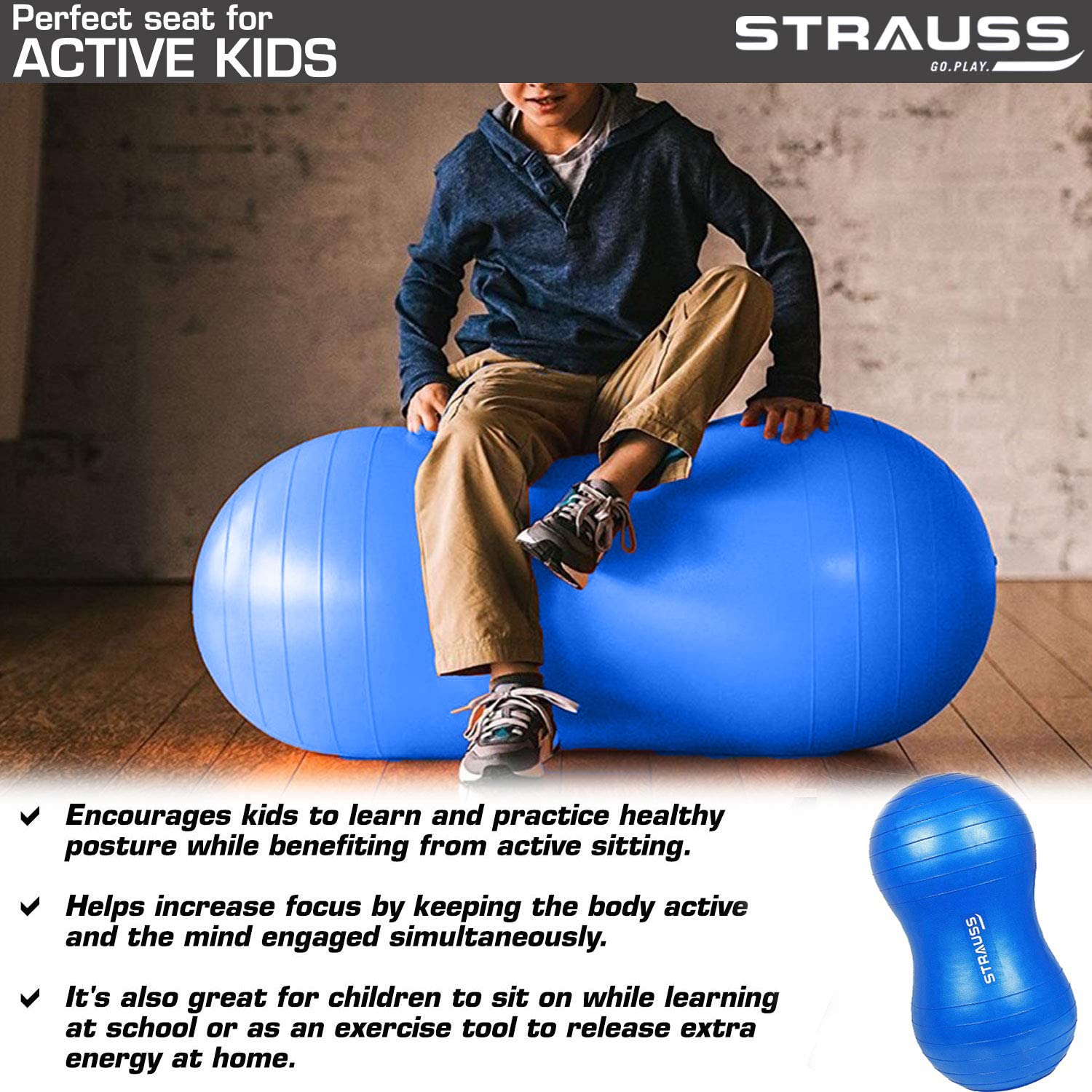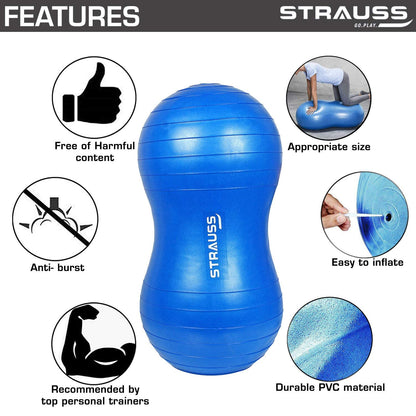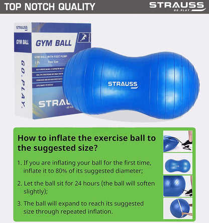 STRAUSS Anti-Burst Rubber Peanut Shape Gym Ball with Free Foot Pump | Round Shape Swiss Ball for Exercise, Workout, Yoga, Pregnancy, Birthing, Balance & Stability, 95x45 cm, (Blue)