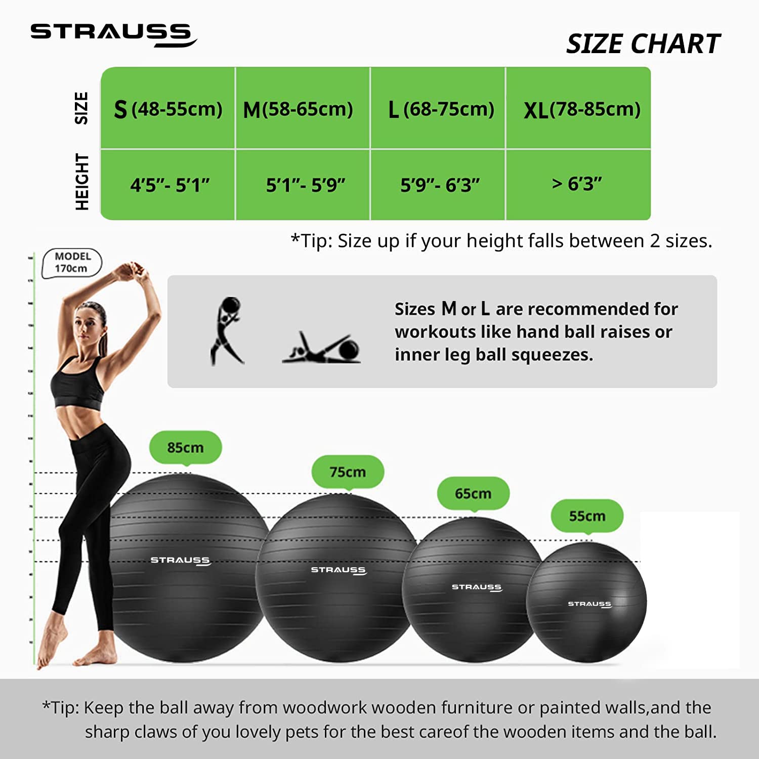 • High-Quality Construction: Made from durable rubber with an anti-slip surface, this gym ball is resistant to bursting, ensuring a secure grip.