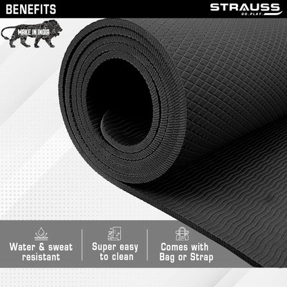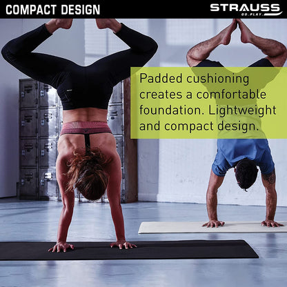STRAUSS EVA Yoga Mat with Carry Strap | Non-Slip Exercise Mat for Home | Eco-Friendly, Lightweight & Durable Workout Mat | Ideal for Yoga, Pilates, Fitness | Suitable for Men & Women, 6mm (Black)
