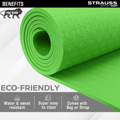 STRAUSS TPE Dual Layer Yoga Mat| Exercise Mat for Yoga,Pilates & Gym| Lightweight & Eco-Friendly Material | Yoga Mat for Women and Men |Ideal for Home Gym Workout |Includes Carry Strap | 4MM,(Green)