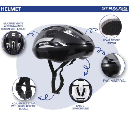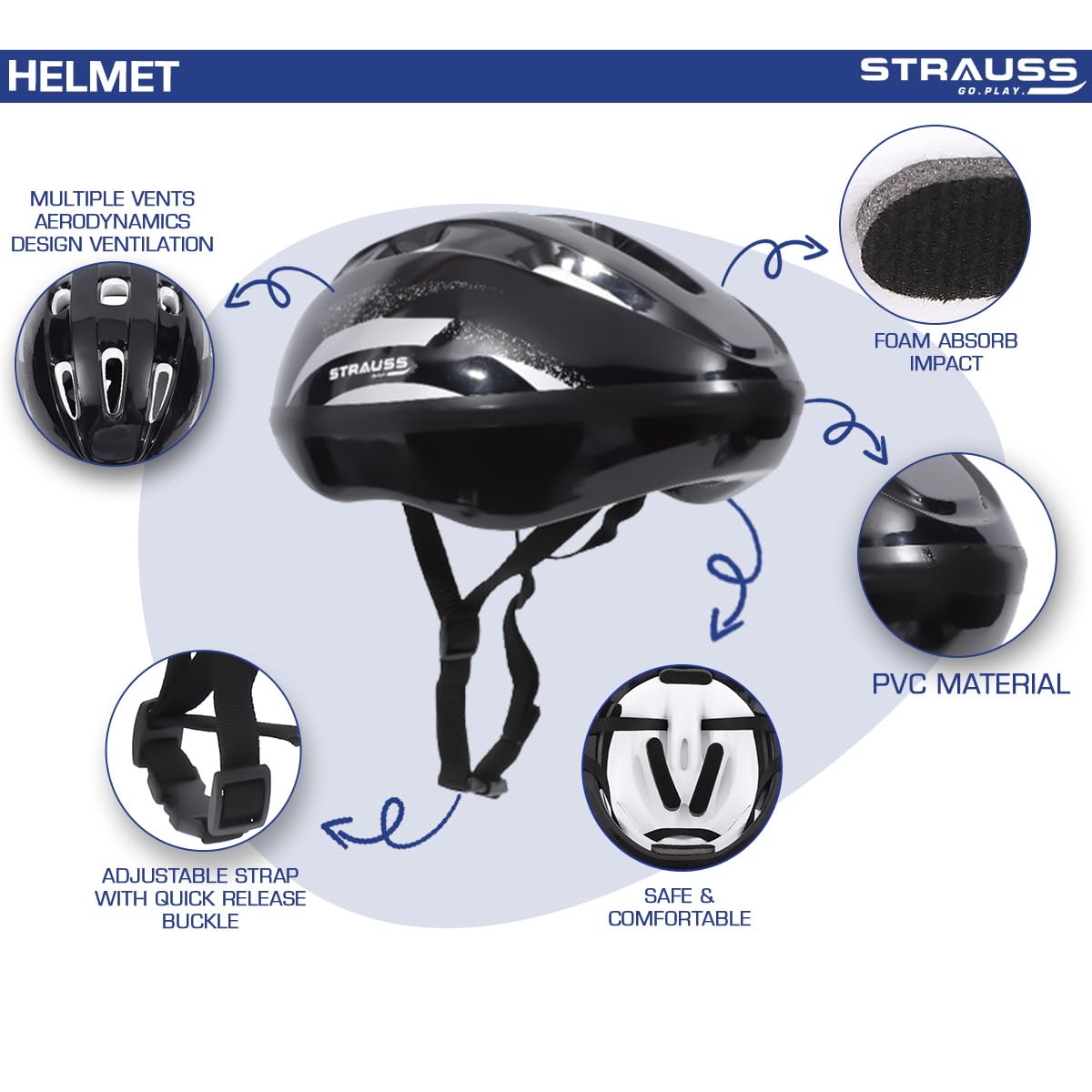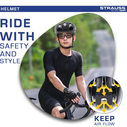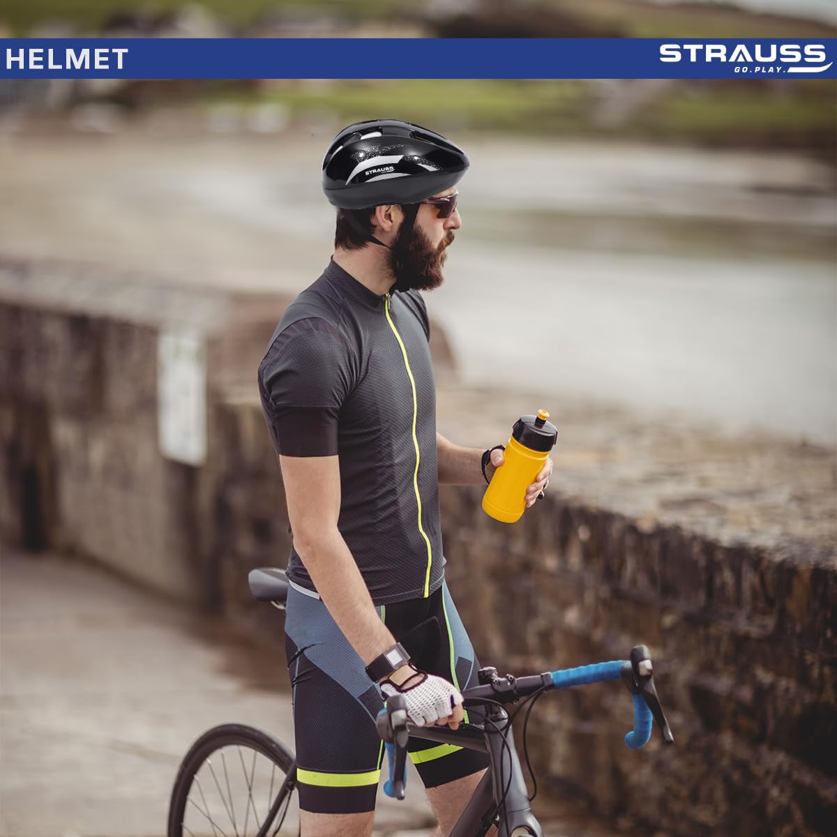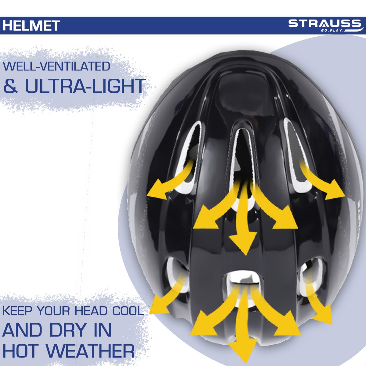 Strauss ArmorX Cycling Helmet | Light Weight with Superior Ventilation | Mountain, Road Bike & Skating Helmet with Premium EPS Foam Lining | Ideal for Adults and Kids, (Black)
