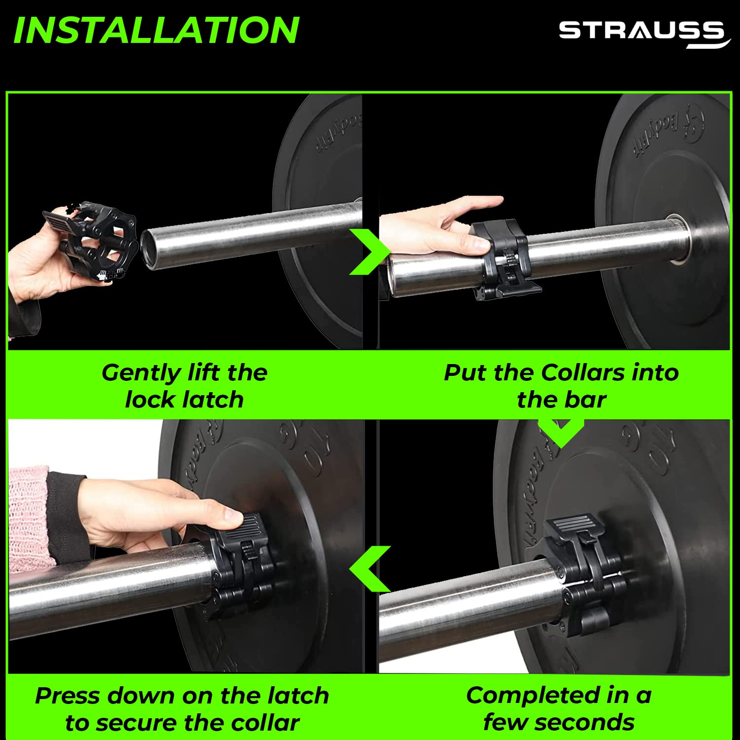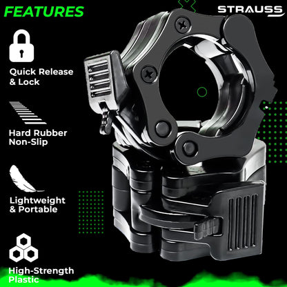 Make the most of your workout, weightlifting, and fitness journey with the Strauss Barbell Lock Collars—the ultimate gym companion for strength training.