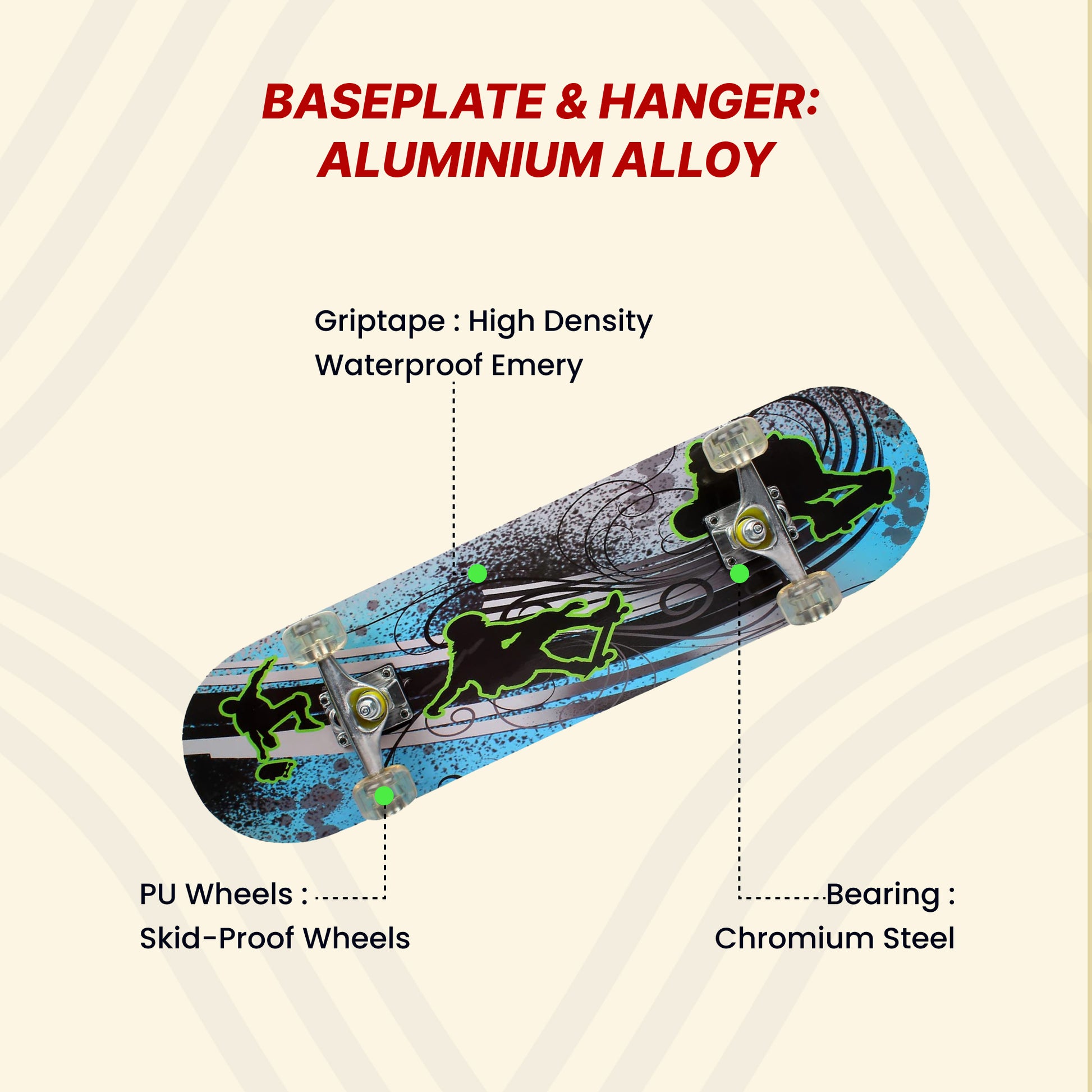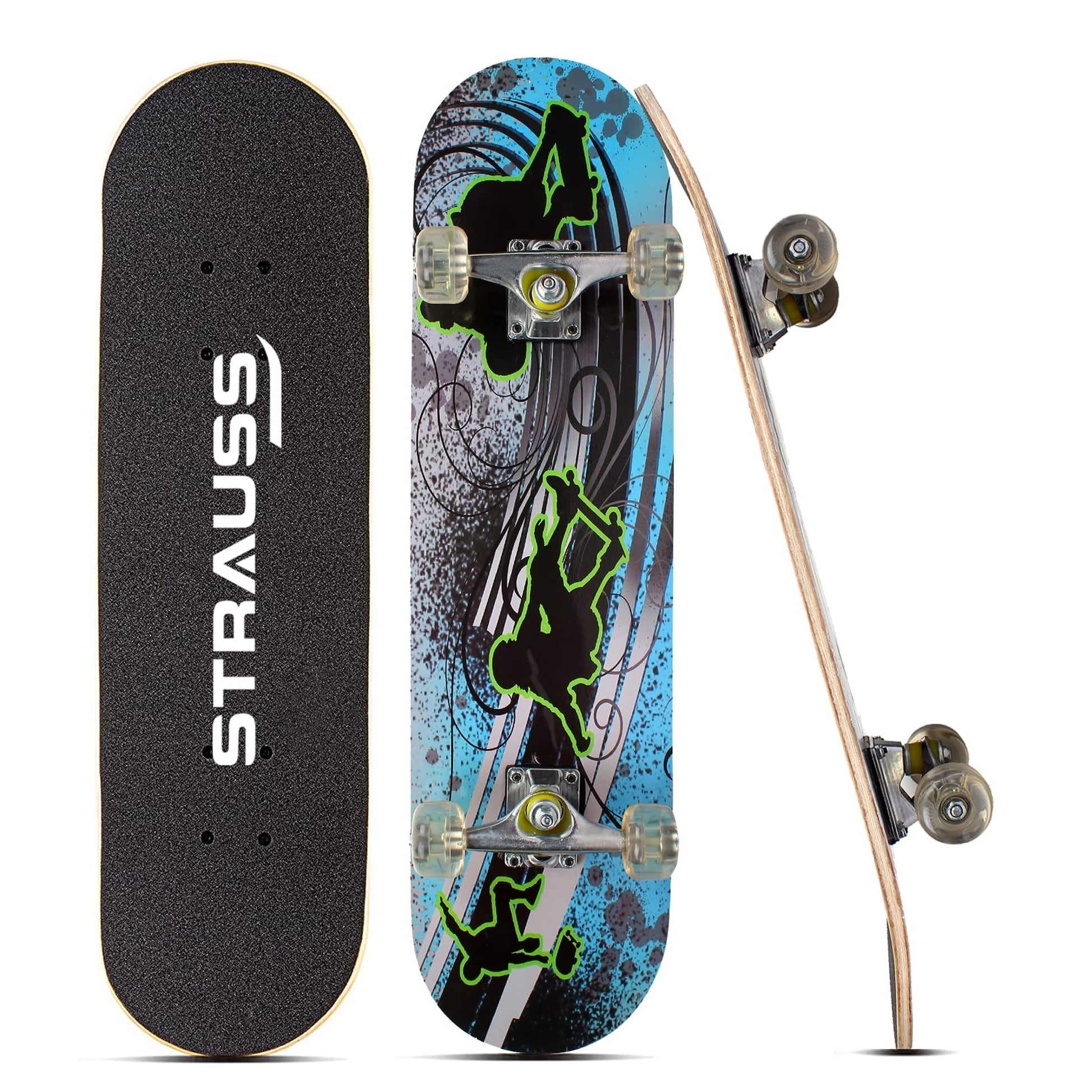 Strauss Bronx BT Lightweight Skateboard with Unique Graphics|31 X 8 Inches with 8 Layer Maple Deck with High Density & Non-Slip Waterproof Grip Tape|2 inch PU Wheels|Suitable for 8 Years and above