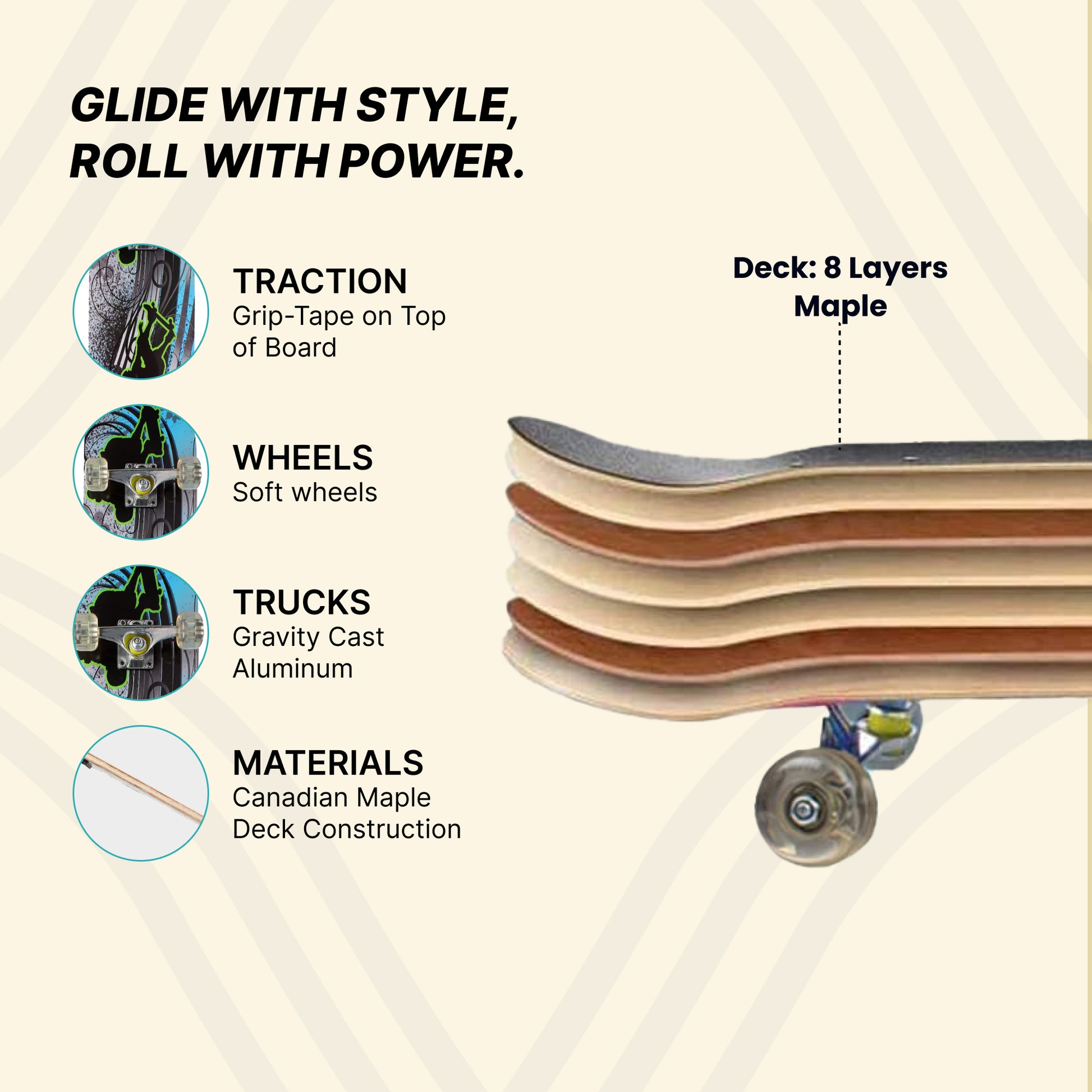 • Durable Construction: Made from 8-ply maple wood, ensuring strength and stability for a smooth ride.