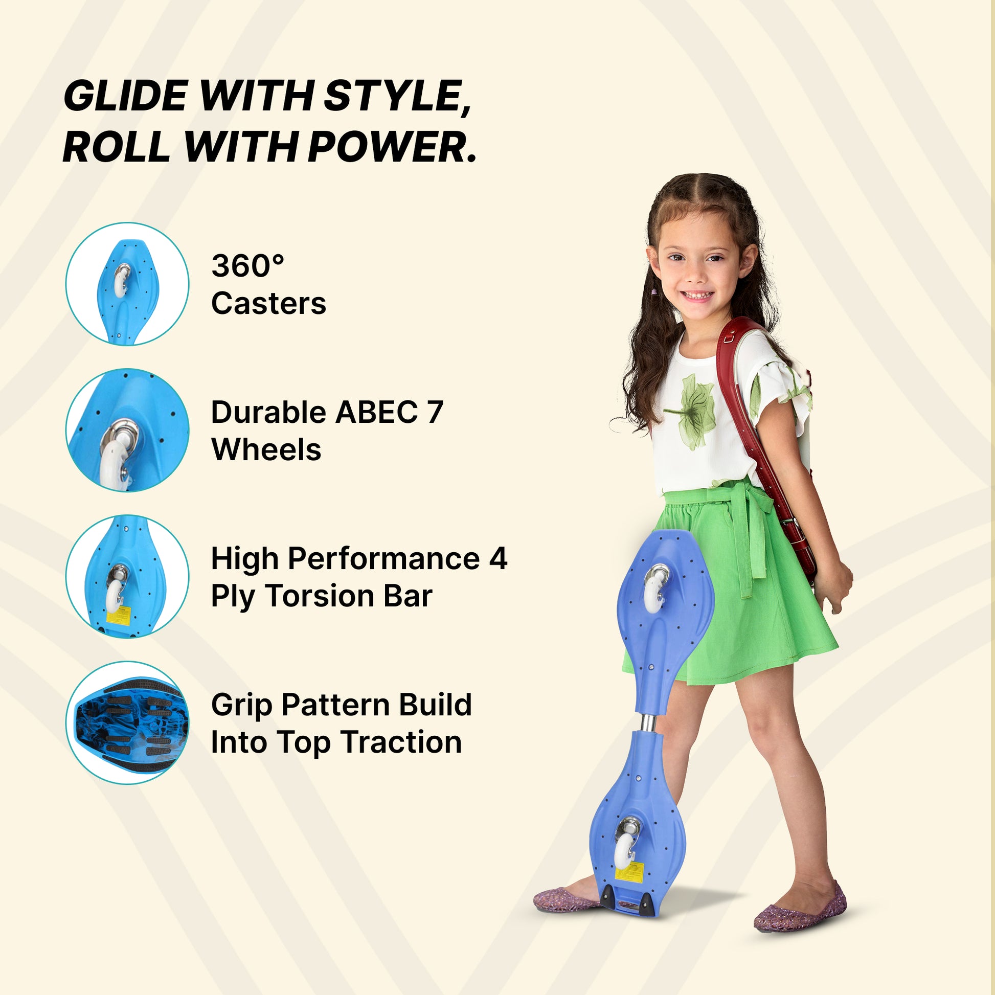 • 360 Degree Caster Wheels: Experience the excitement of carving without needing to push off with your feet, thanks to the innovative design that allows for smooth, fluid movement.