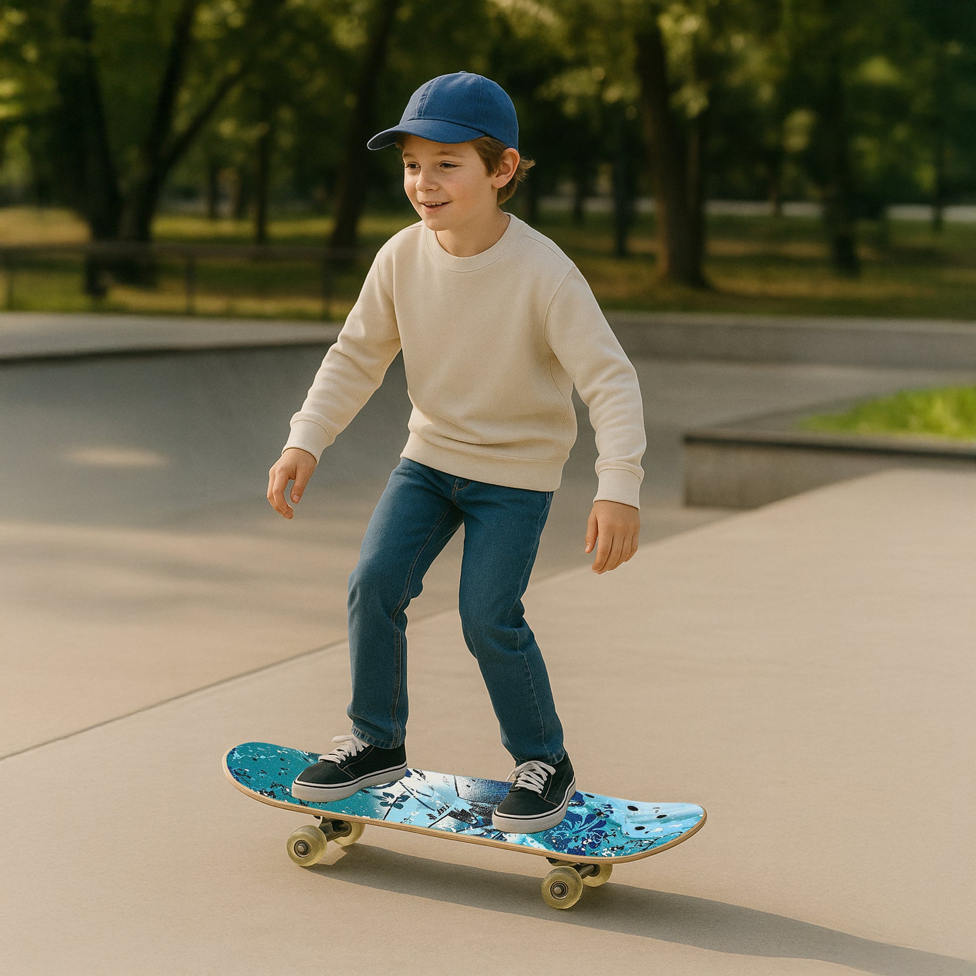 Perfect for any setting, whether you’re cruising down the street, performing tricks at the park, or simply showcasing your style to friends and family, this skateboard is an excellent choice. Its eye-catching unique graphics make it as attractive as it is functional.