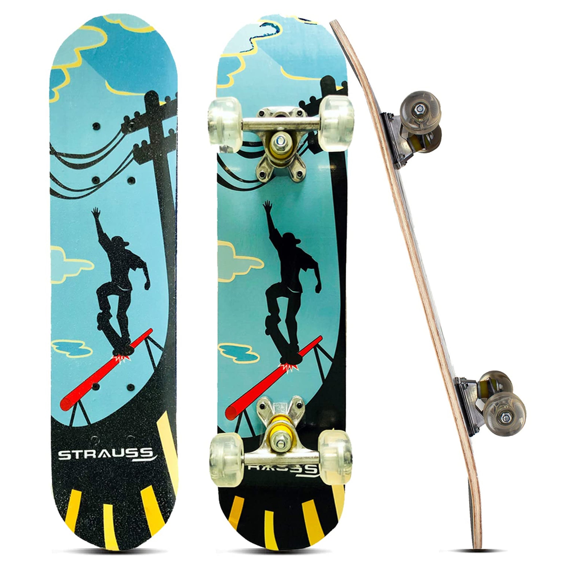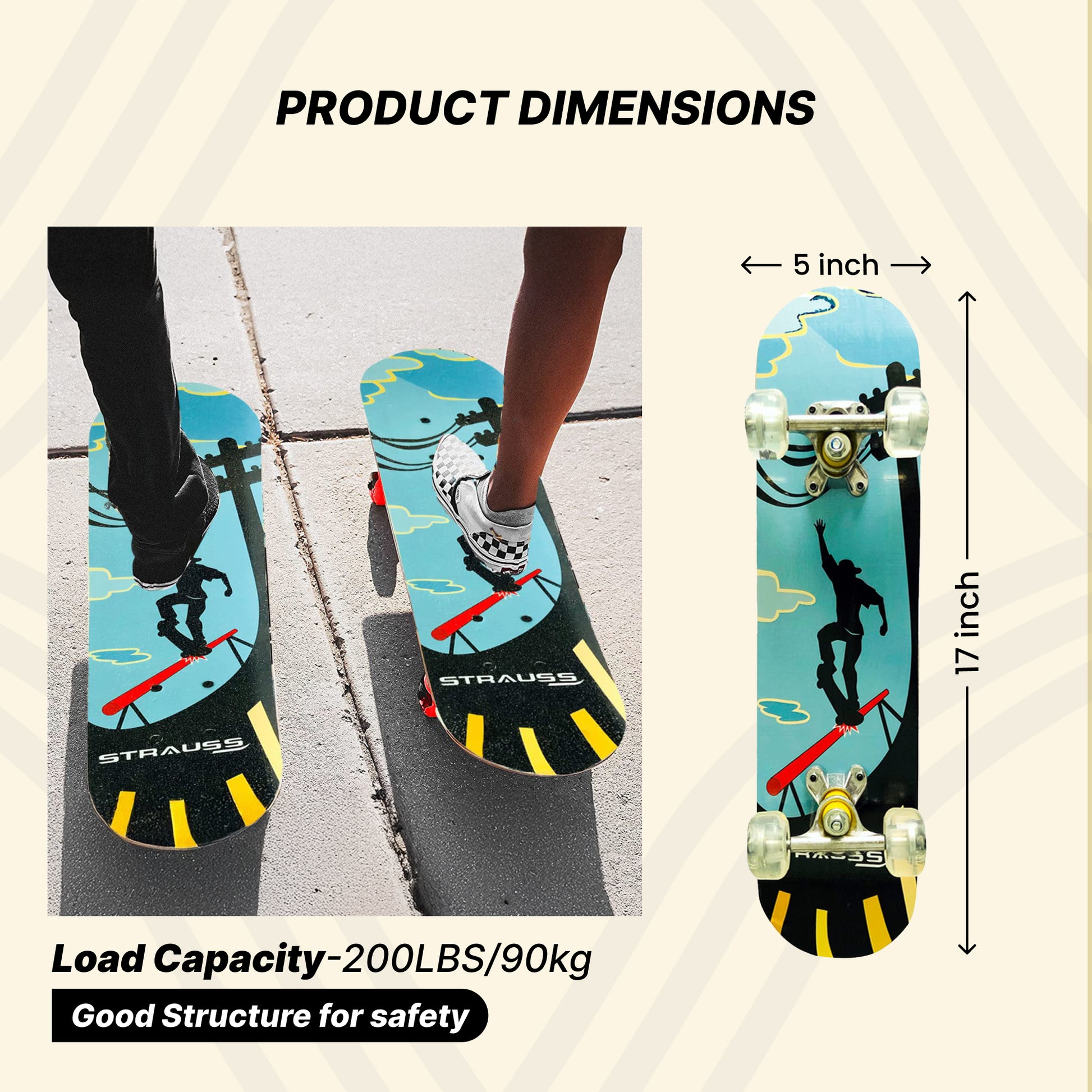 Strauss Bronx KD Lightweight Skateboard with Unique Graphics| 8 Layer Maple Deck with High Density & Non-Slip Waterproof Grip Tape PU Wheels | Suitable for Kids, Age (5-9 Years)