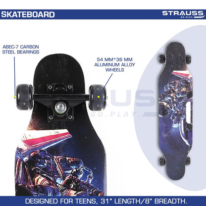 Whether you’re a beginner, an experienced rider, or just looking for some outdoor enjoyment, the STRAUSS Bronx Skateboard is perfect for all skill levels, ages 8 and above. Ride with confidence and elevate your skateboarding skills with this exceptional skateboard that promises fun, excitement, and endless possibilities.