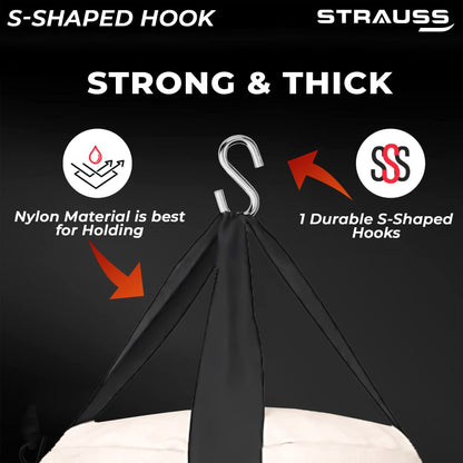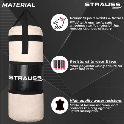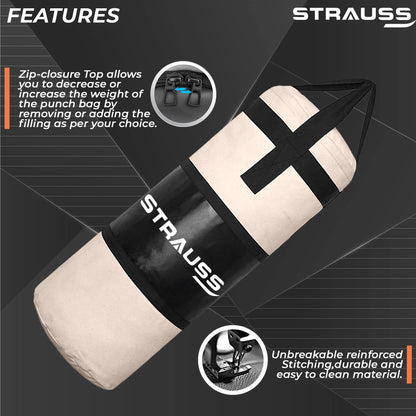 Strauss Canvas Heavy Duty Filled Gym Punching Bag|Hanging S Hook, Zippered Top Head Closure,Heavy Straps |Ideal for Boxing, MMA|Boxing Bag for Home Gym & Fitness Training|2.5 Feet,(Cream/Black)