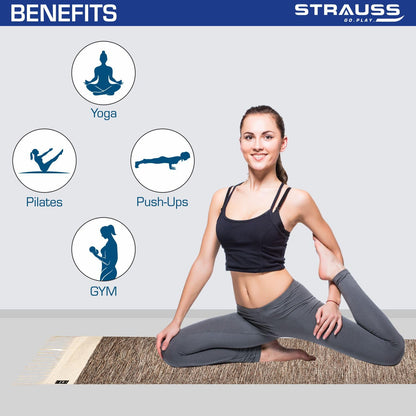 Introducing the Strauss Cotton Yoga Mat by Strauss Sports, your ultimate yoga support! Crafted from premium eco-friendly materials, this mat is ideal for everyone, boasting a generous size of 2 x 6 ft. Made from natural cotton fibers, it promises durability and comfort during your yoga sessions. Whether a seasoned yogi or a beginner, the 6MM thickness offers a perfect balance of cushioning and stability.