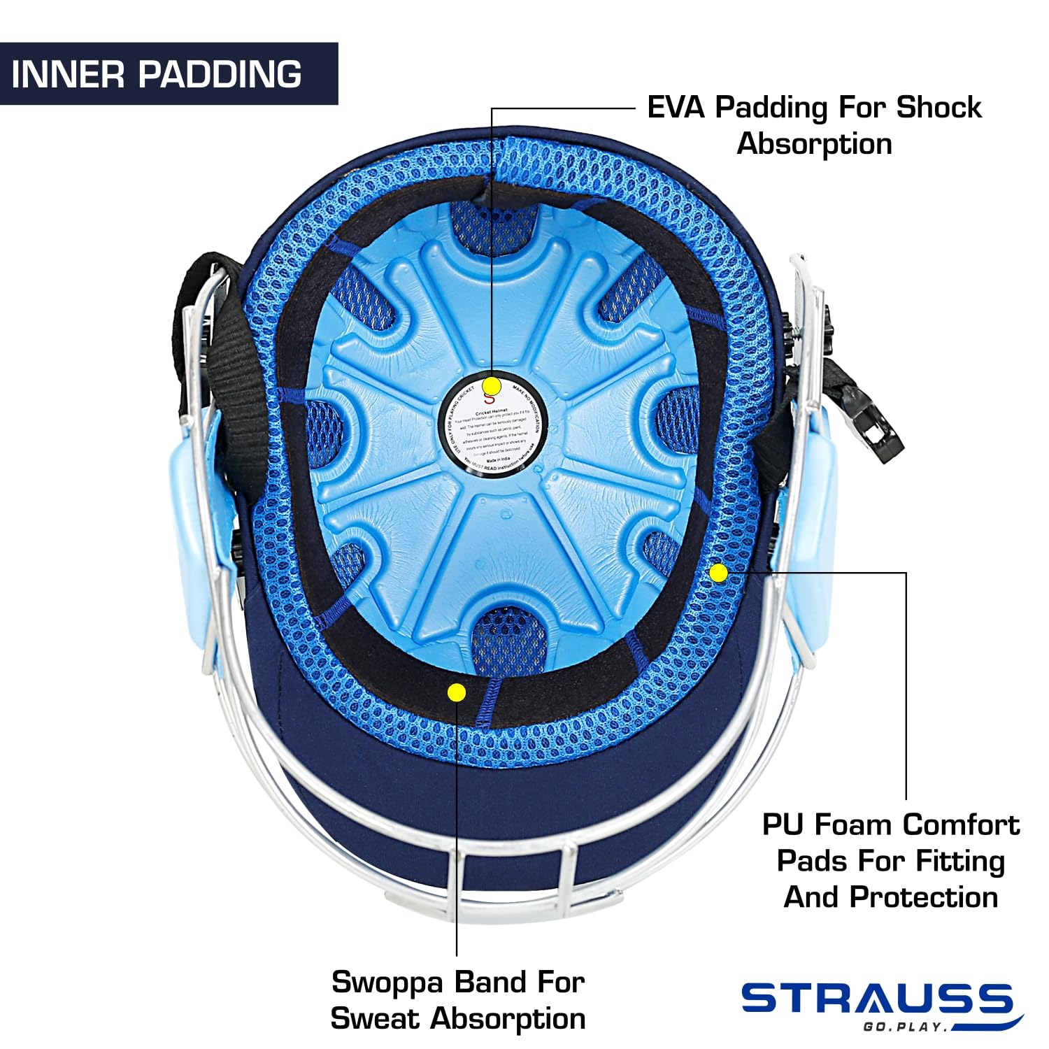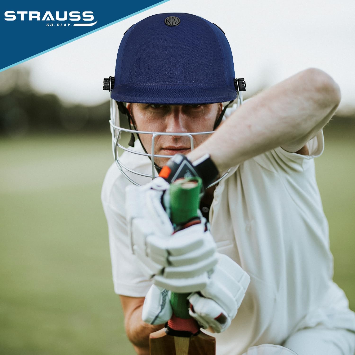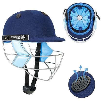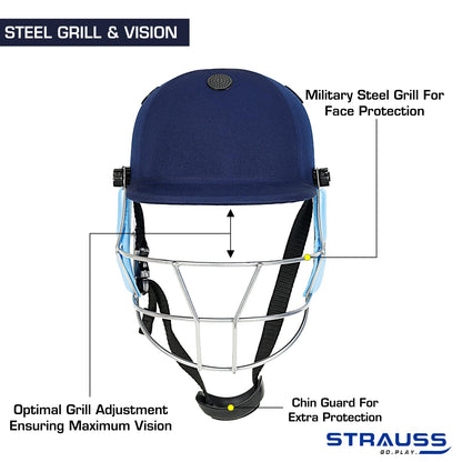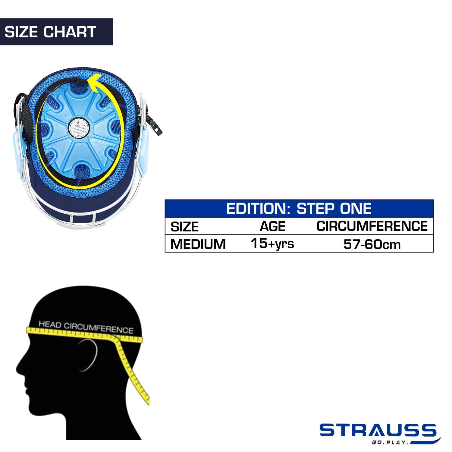 Strauss Cricket Helmet | Steel Grill | Edition: Step One | Size: Medium | Age: 15+yrs | Color: Blue | for Men, Women | Lightweight | Advance Protection | Leather Ball Cricket Helmet
