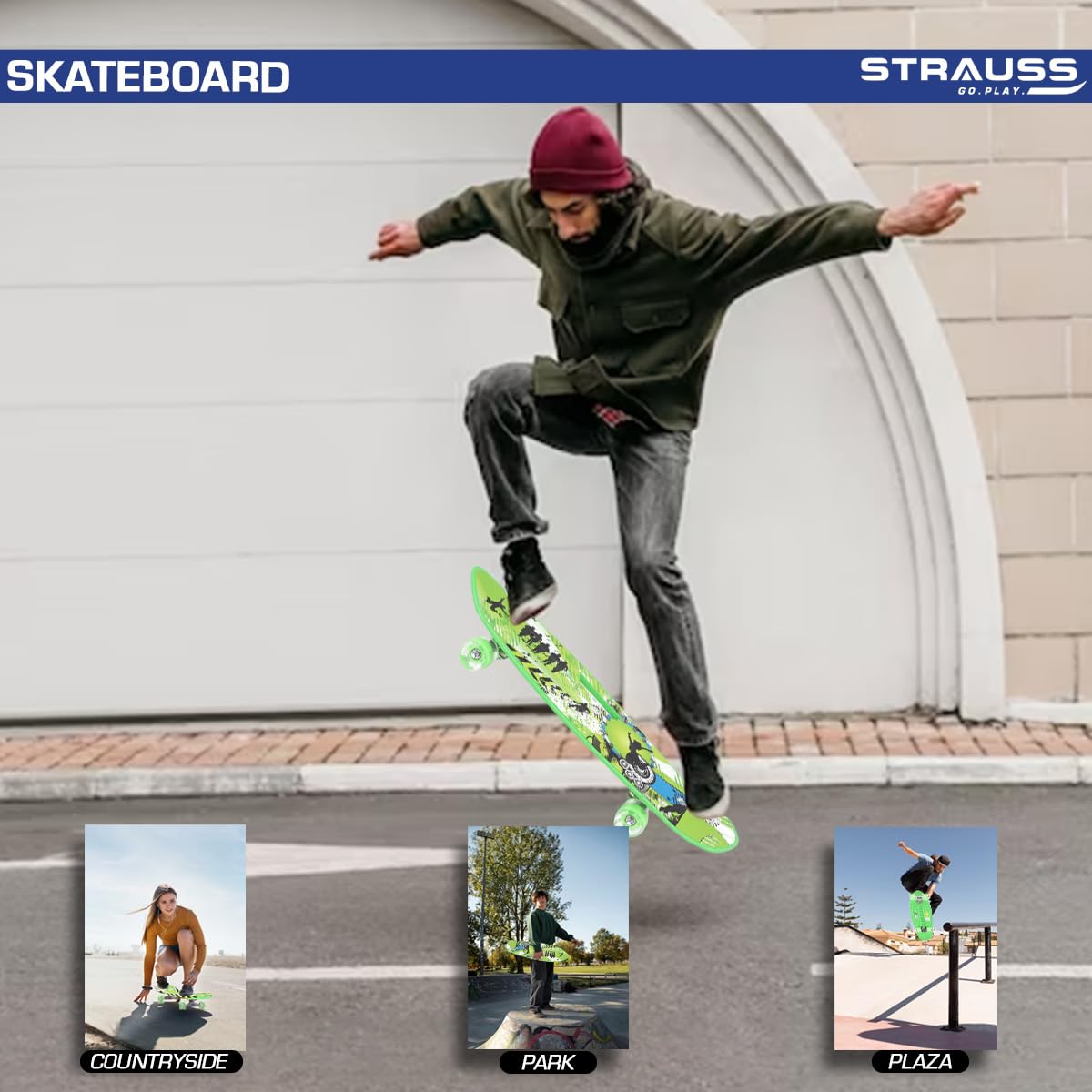 The STRAUSS Mirage Skateboard is perfect for all skateboarding enthusiasts, including beginners, experienced riders, and anyone looking for a fun outdoor activity. Experience the joy of skateboarding and elevate your adventure with Strauss Sports today!
