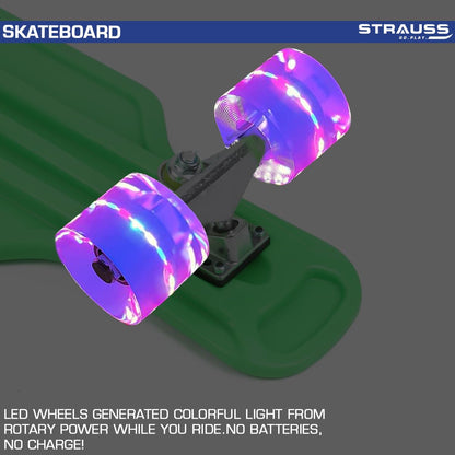 STRAUSS Cruiser Skateboard| Penny Skateboard | Casterboard | Hoverboard | Anti-Skid Board with High Precision Bearings | Wheels with Light |Ideal for All above 8 Years (31 X 8 Inch), (Green)