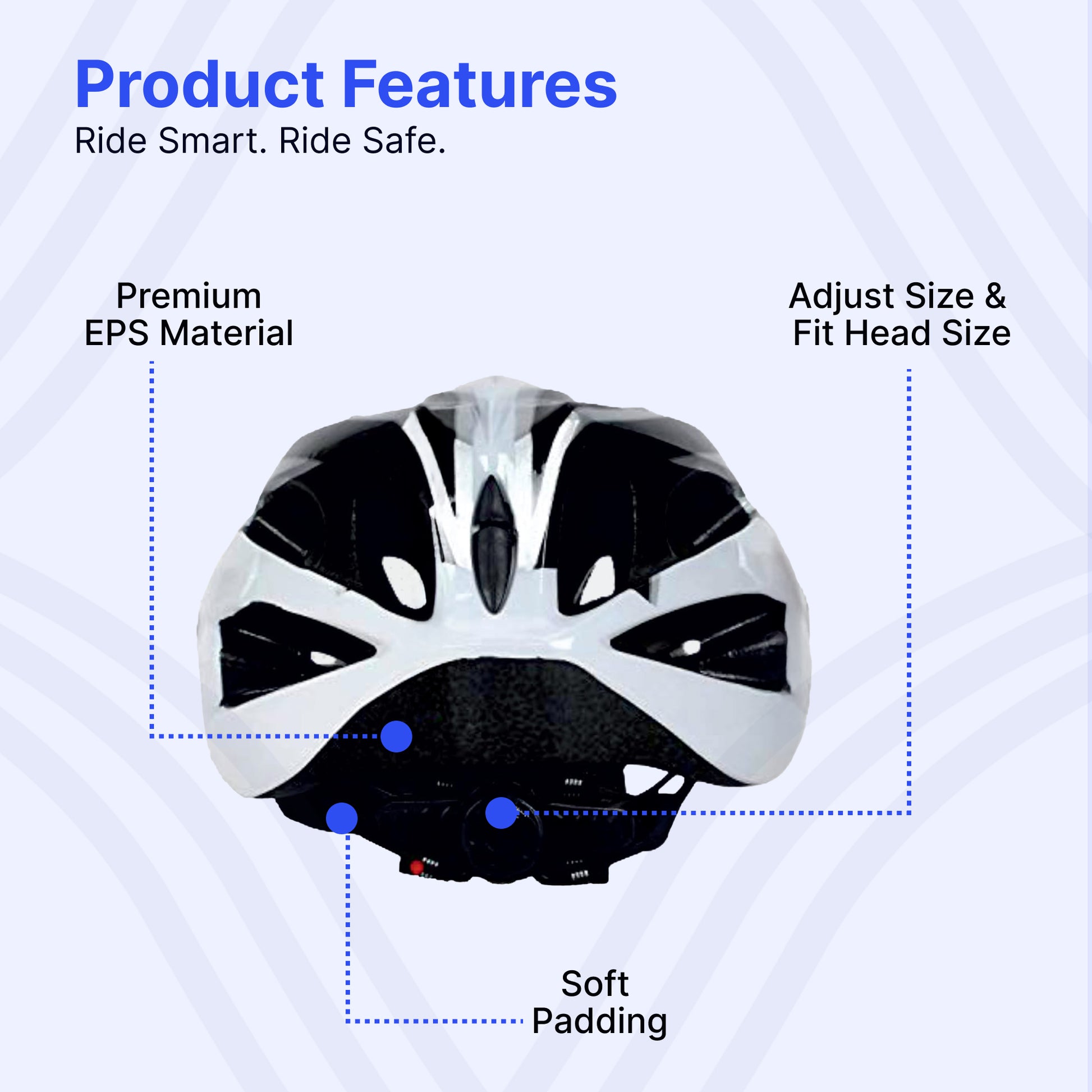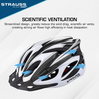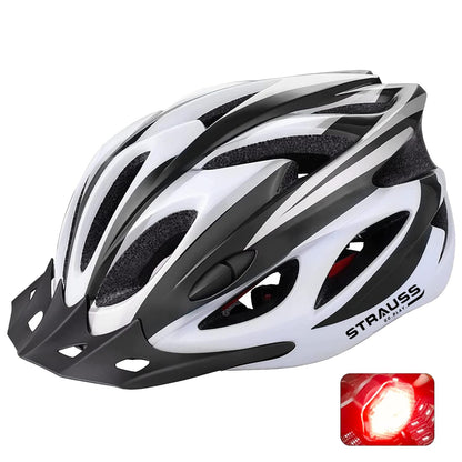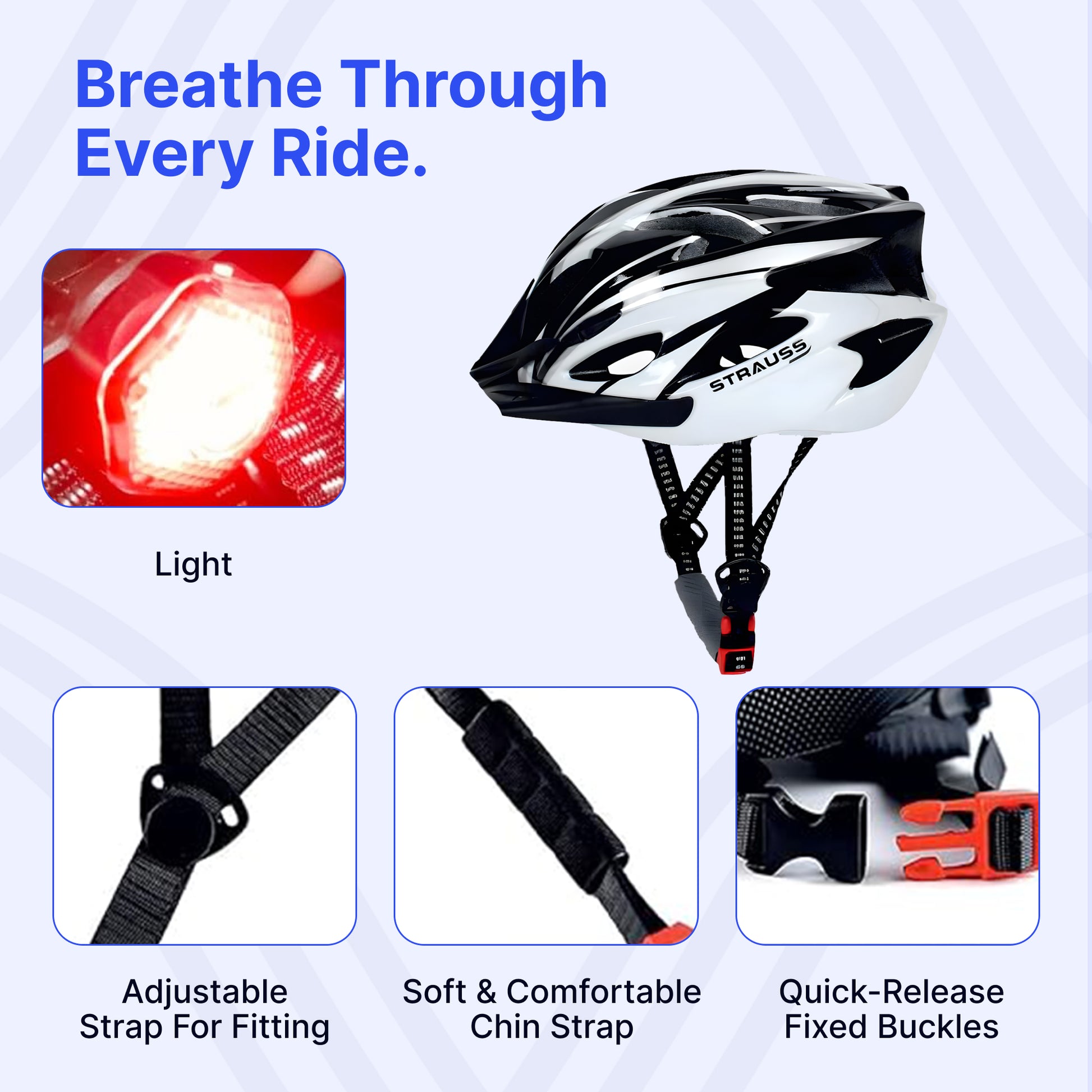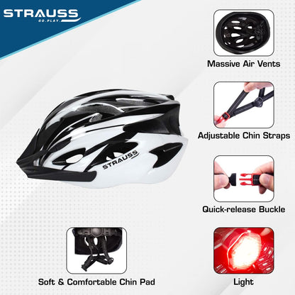 Strauss Adjustable Cycling & Skating Helmet with Detachable Visor & Safety Light | Light Weight with Ventilation | Adjustable Strap, Comfortable Chin Pad | Ideal for Men, Women & Kids (Black/White)