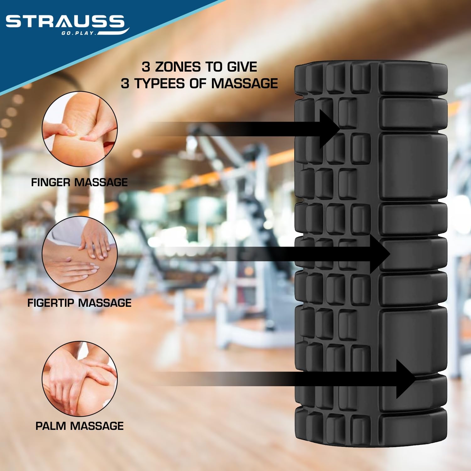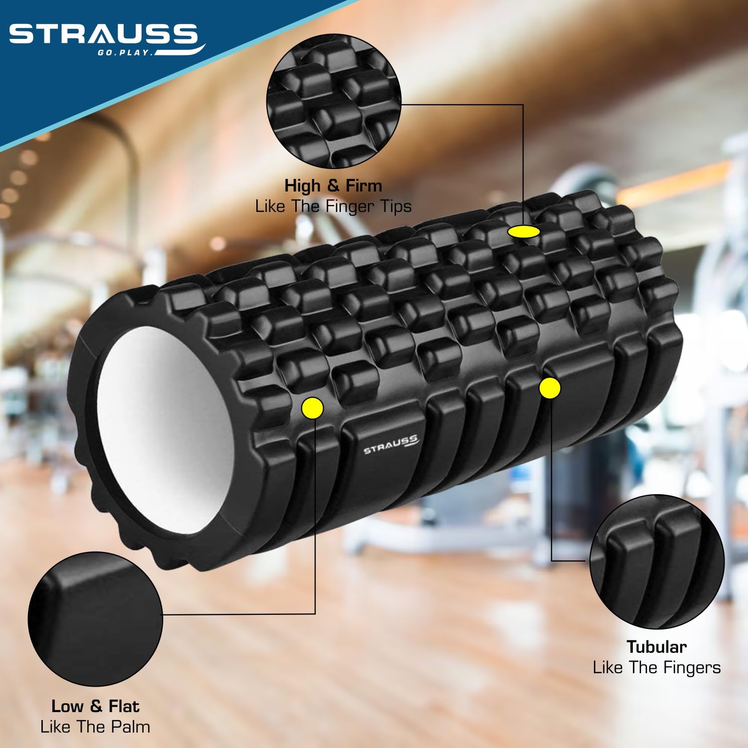 Strauss Deep Tissue Massage Foam Roller|High-Density Muscle Roller for Myofascial Release, Physical Therapy, Yoga, Pilates|Exercise Equipment for Deep Tissue Massage and Muscle Relief|33cm,(Black)