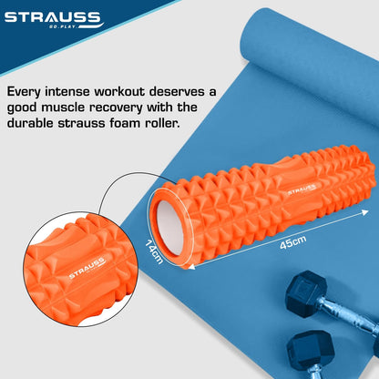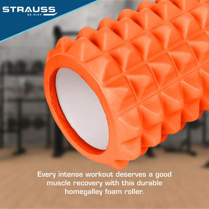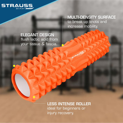 Strauss Yoga Foam Roller | Deep Tissue Massage Roller for Knee Exercise, Muscles Recovery & Physiotherapy | Home Gym Fitness Equipment for Full Body Relaxation and Flexibility | 45cm,(Orange)