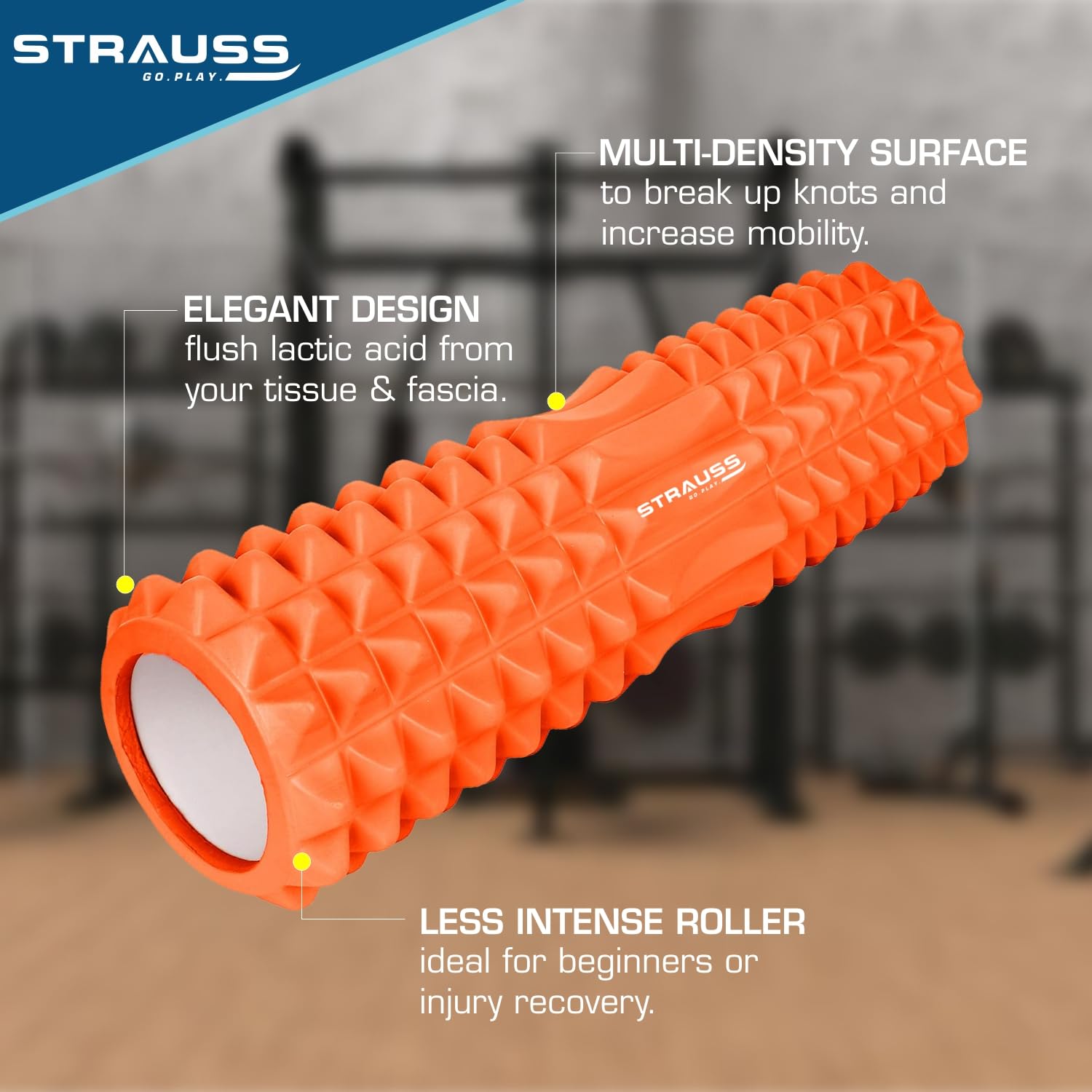Strauss Deep Tissue Massage Foam Roller - Ergonomic Design | 33 cm | Orange