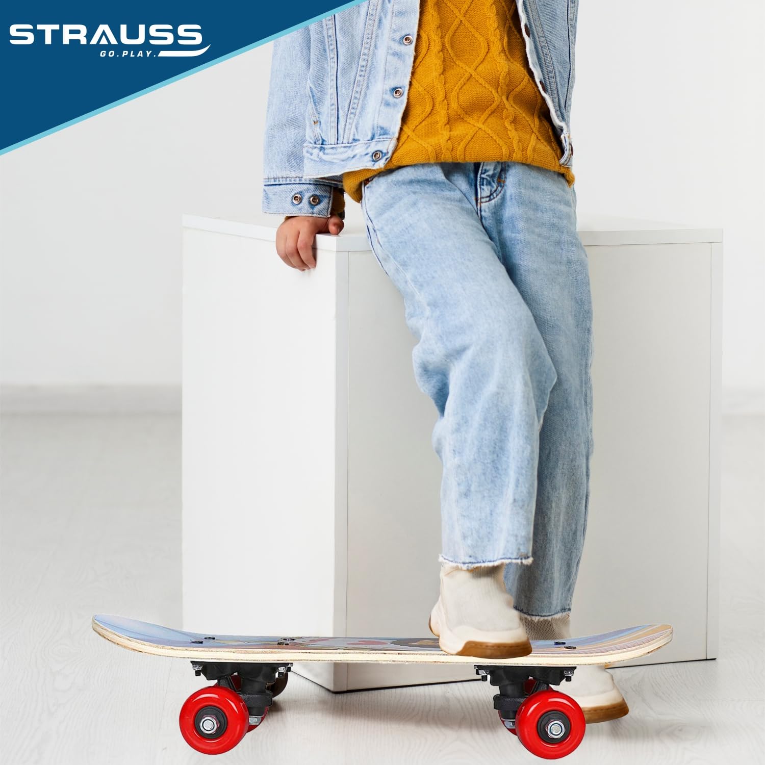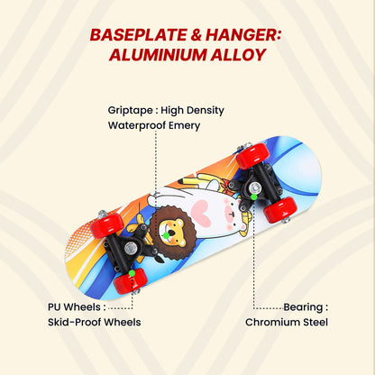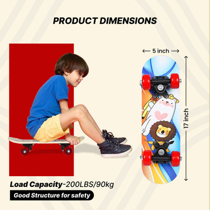 Strauss Kids Skateboard | 17 X 5 Inches Maple Wood Skateboard with PU Wheels for Kids Upto 5 Years | Suitable for Boys and Girls | Ideal for Beginners,Learners and Training Purpose, (Lion)