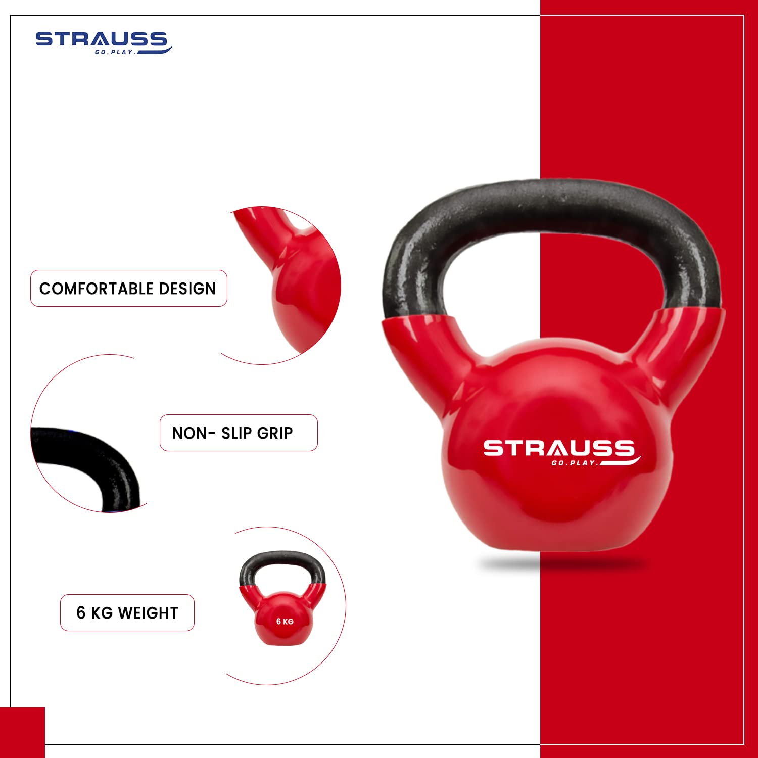 Strauss Premium Vinyl Kettlebell Weight for Men & Women | 14 Kg | Ideal for Home Workout, Yoga, Pilates, Gym Exercises | Non-Slip, Easy to Hold, Scratch Resistant (Red)