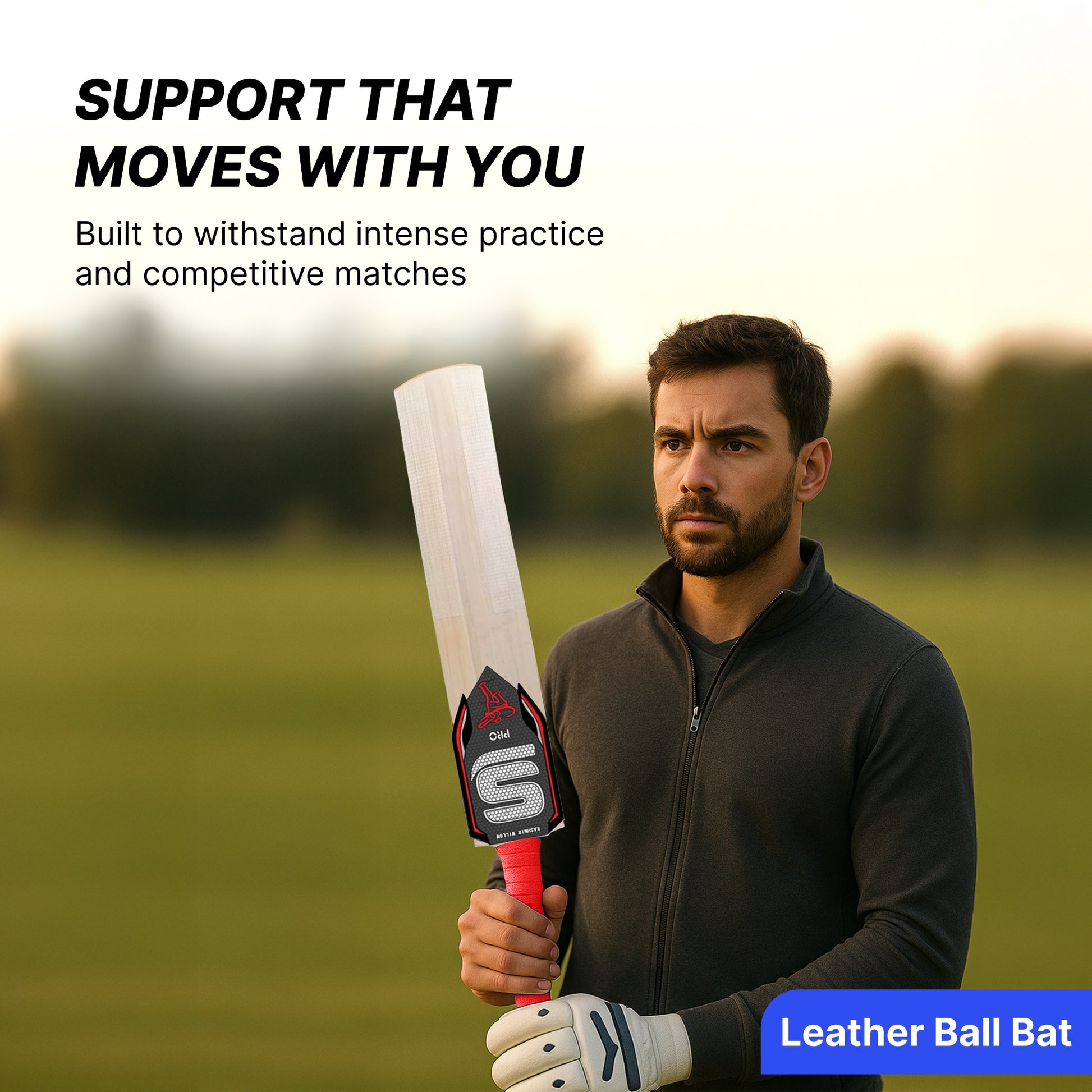 • Kashmir Willow Blade: Known for its robust durability and enhanced power, this bat provides accurate control, ensuring every stroke is executed with confidence.